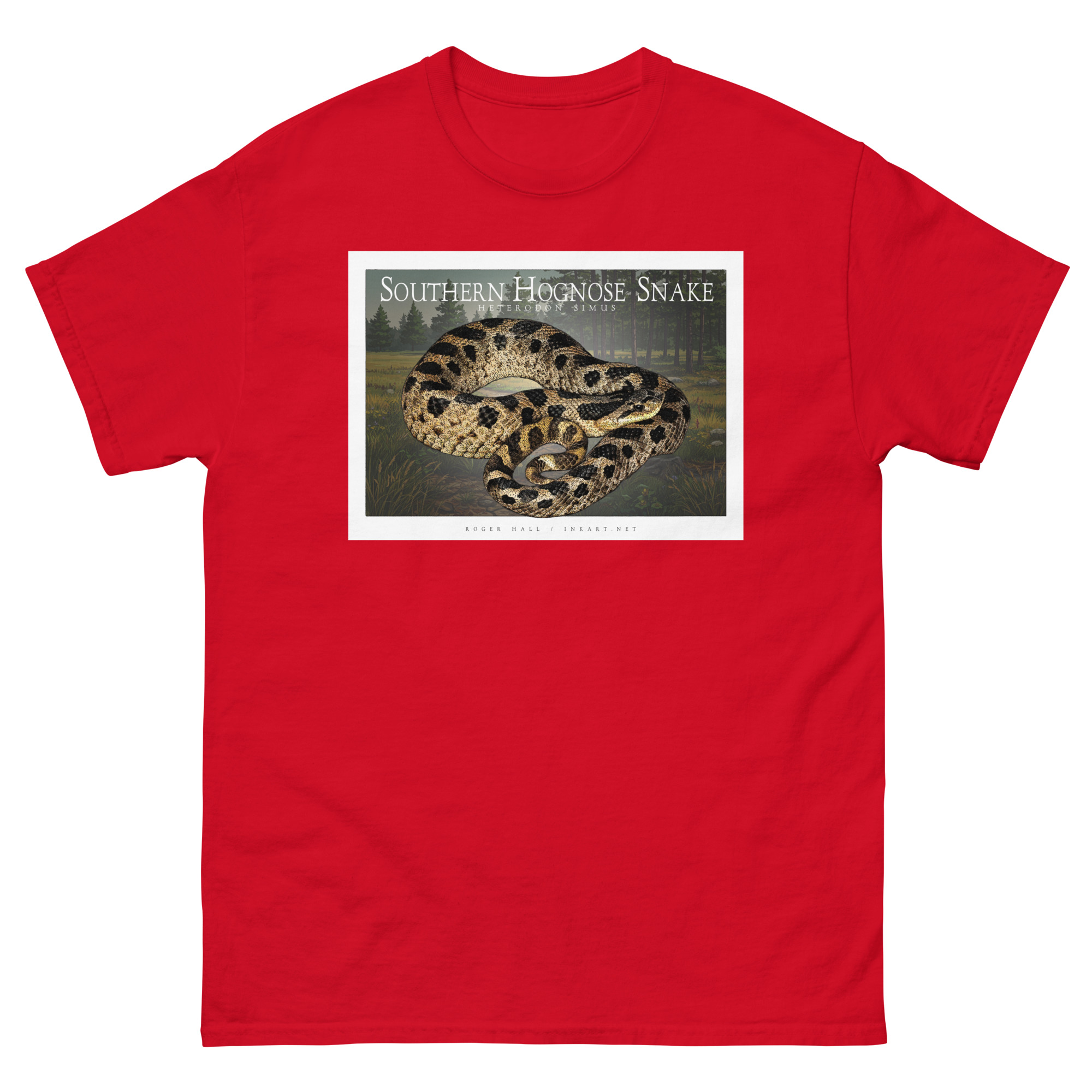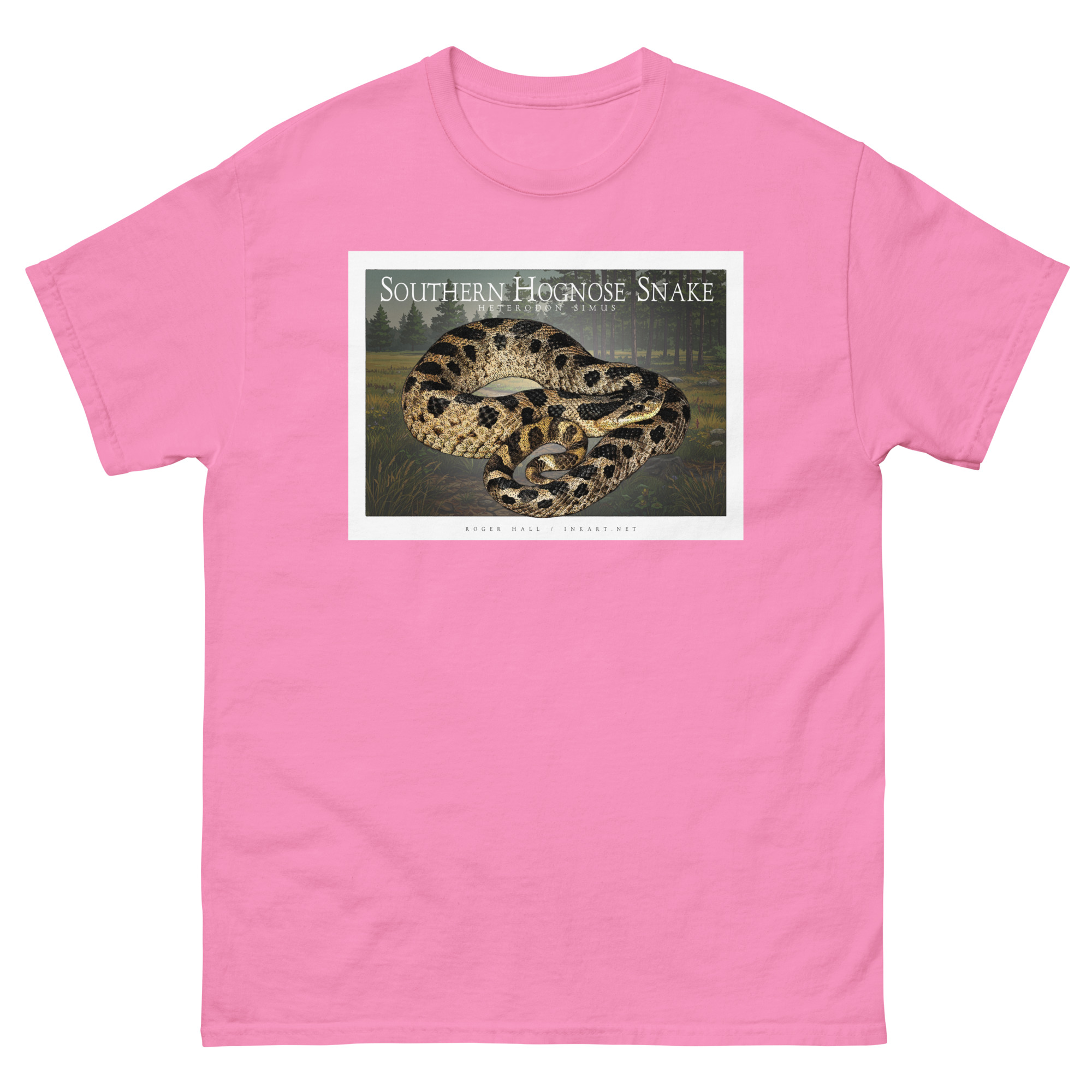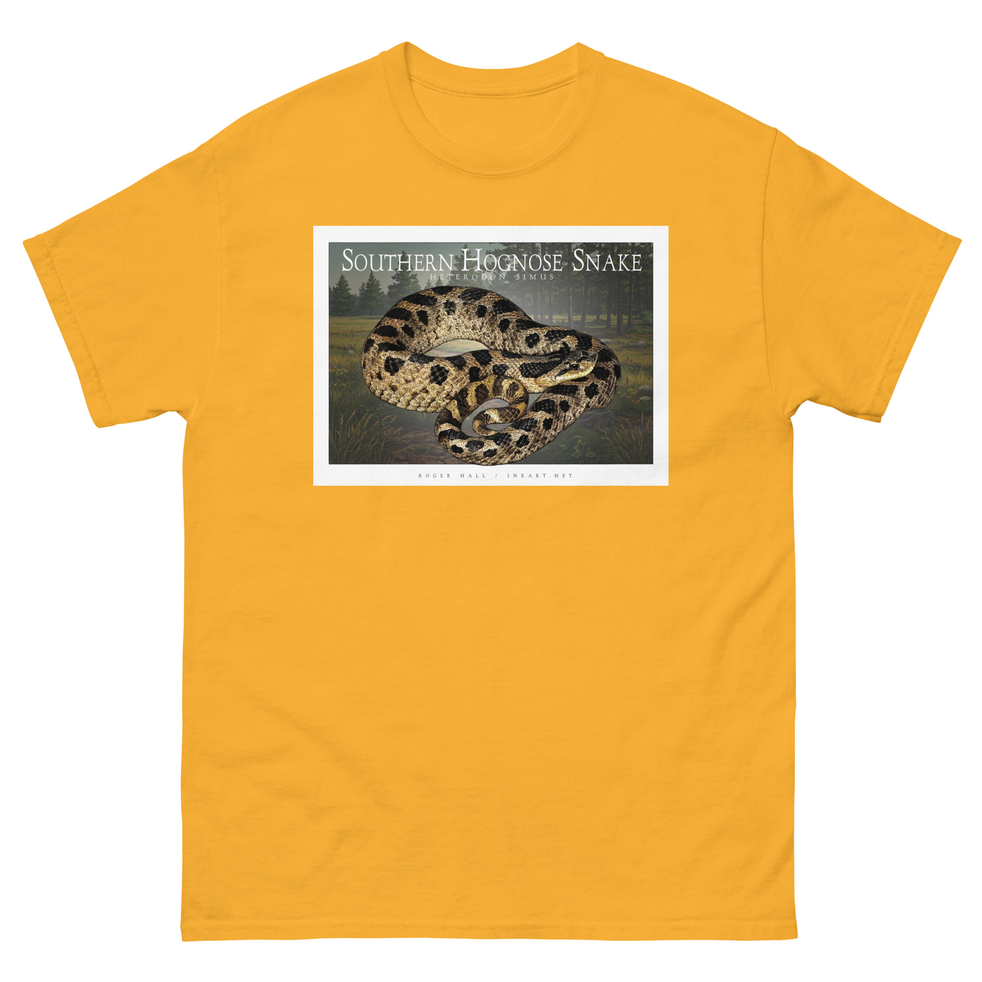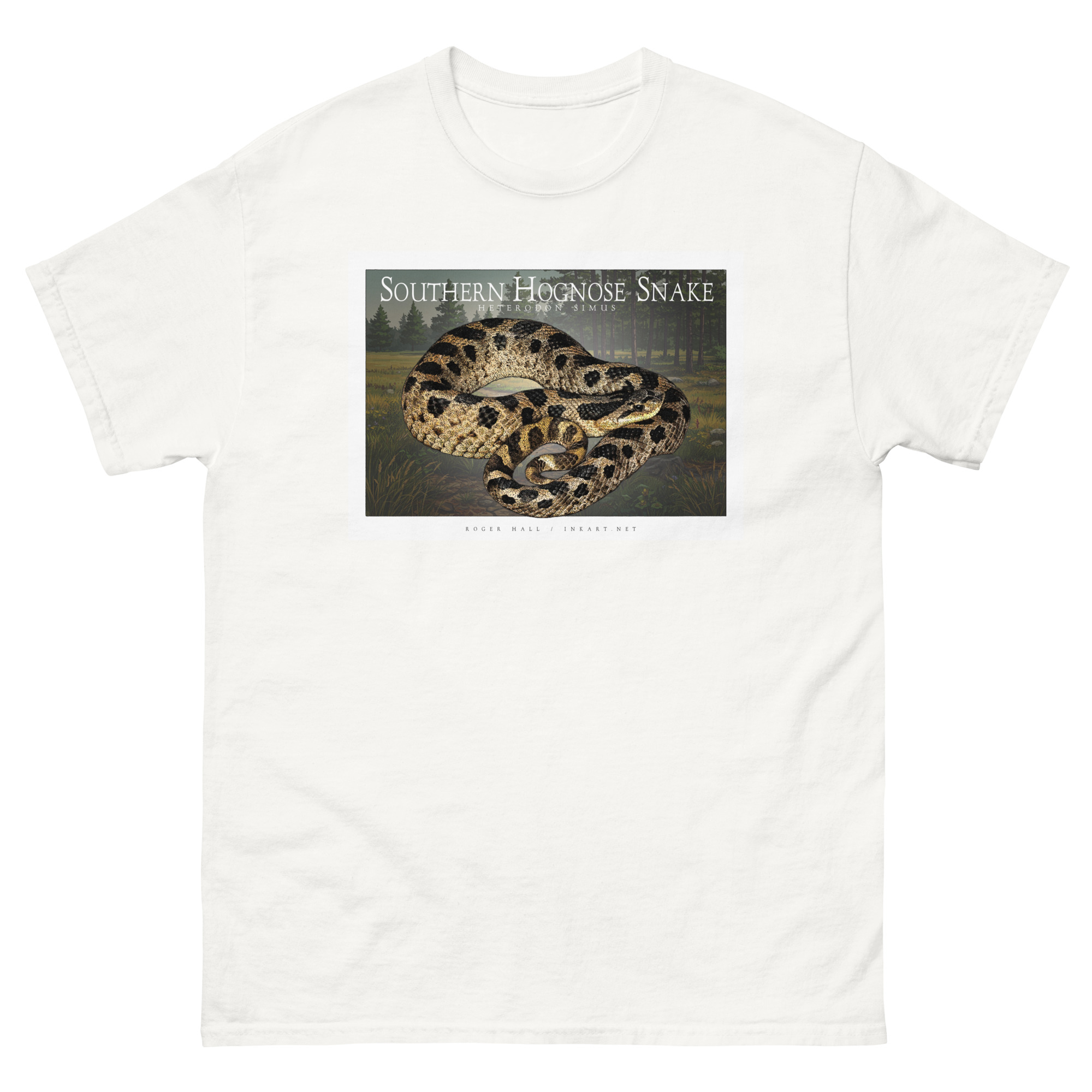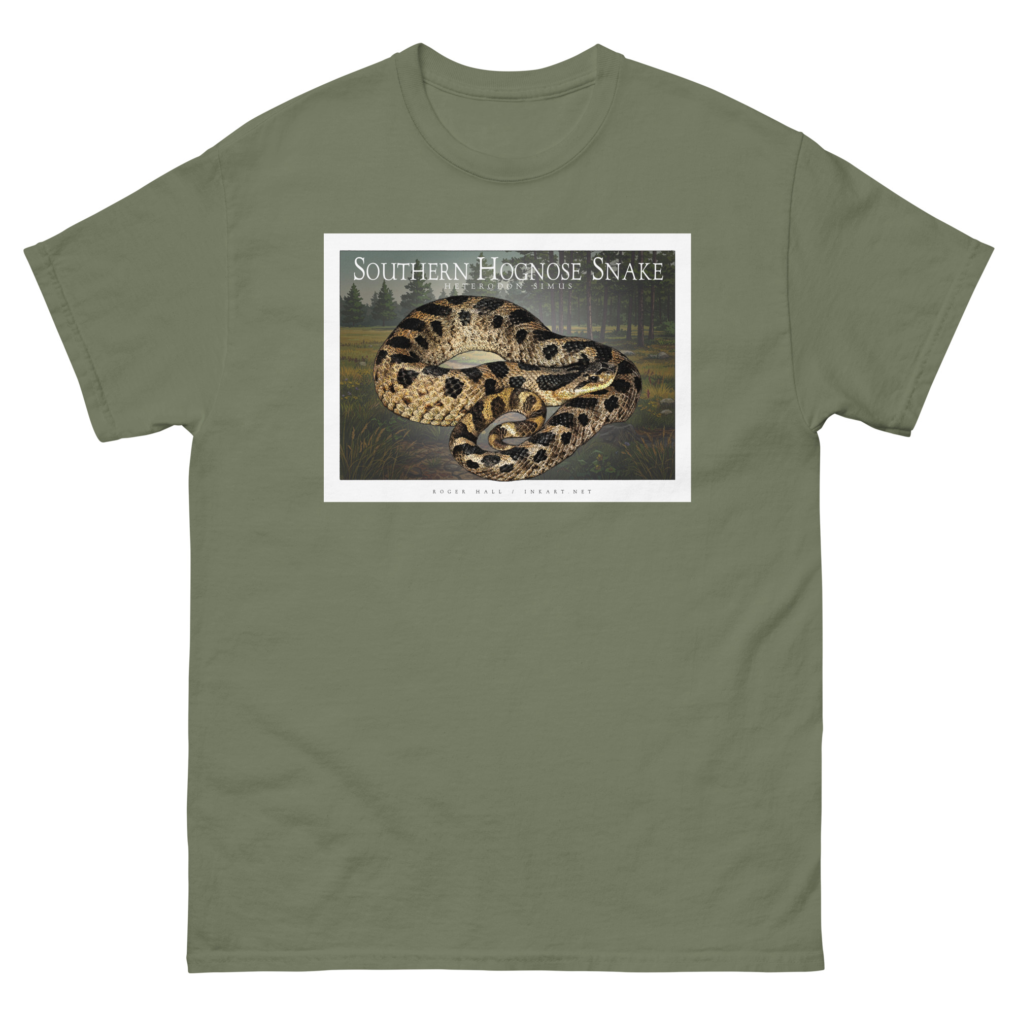 Scientifically accurate drawing of a Southern Hognose Snake (Heterodon simus.) The illustration of a printed on a high-quality 100% unisex cotton t-shirt.
