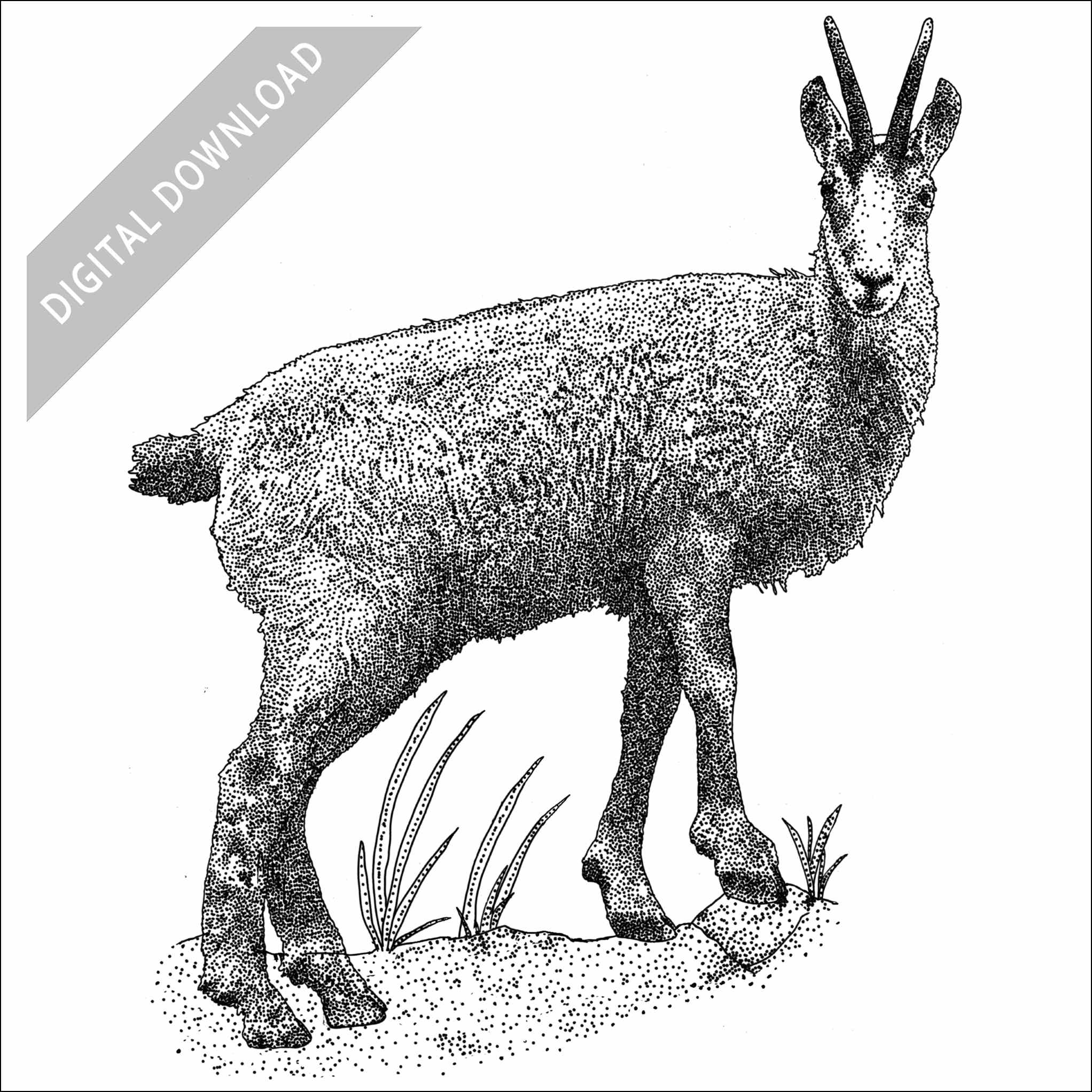 Stock art illustration of a Balkan Chamois (Rupicapra rupicapra balcanica.)Â The illustration is available in black and white or color for immediate download.