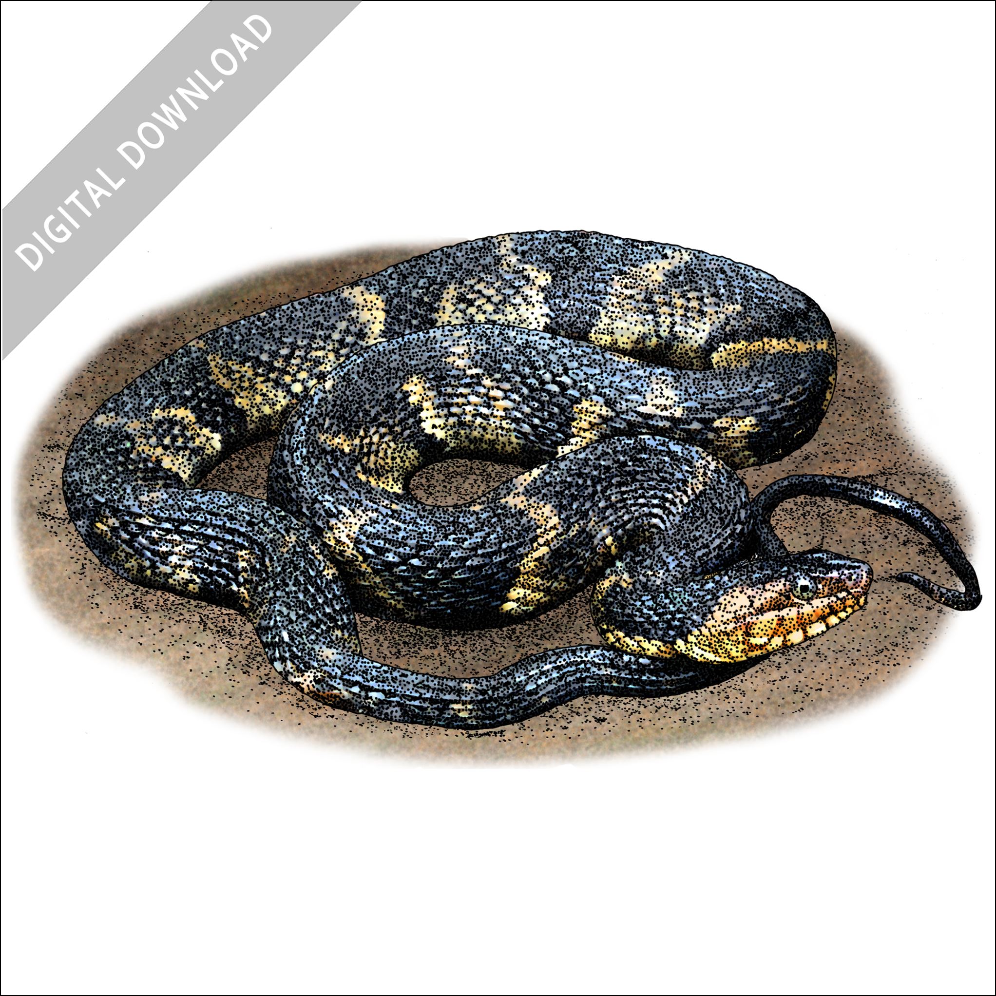 Stock art illustration of a Banded Watersnake (Nerodia fasciata.)Â The illustration is available in black and white or color for immediate download.