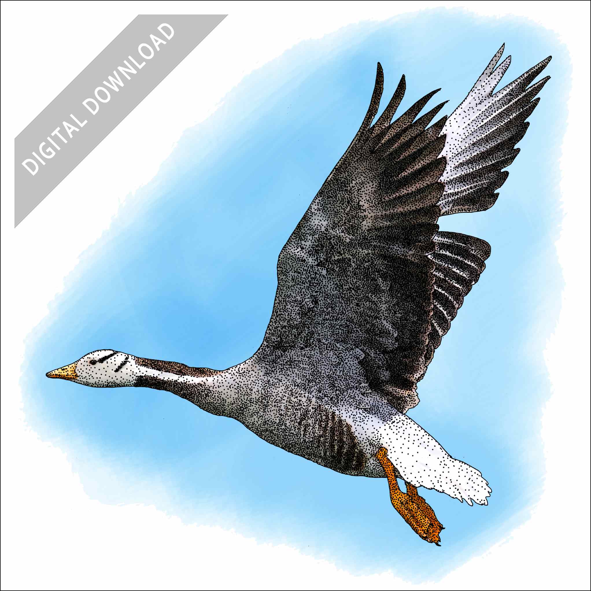 Stock art illustration of a Bar-Headed Goose (Anser indicus.)Â The illustration is available in black and white or color for immediate download.