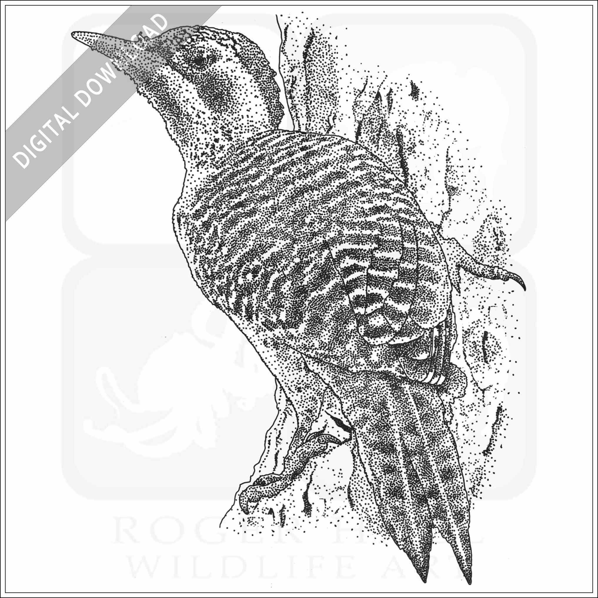 Stock art illustration of a Bennett’s Woodpecker (Campethera bennettii.)Â The illustration is available in black and white or color for immediate download.