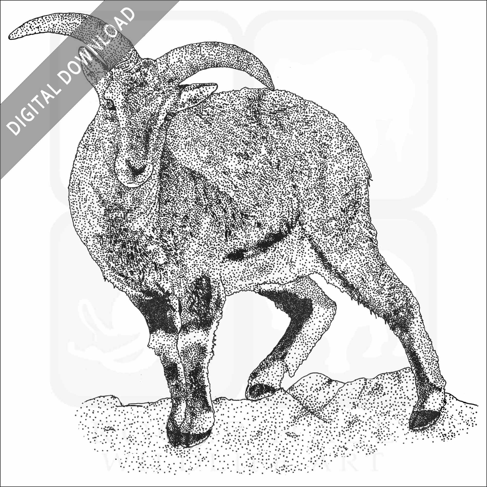 Stock art illustration of a Bharal or Blue Sheep (Pseudois nayaur.)Â The illustration is available in black and white or color for immediate download.