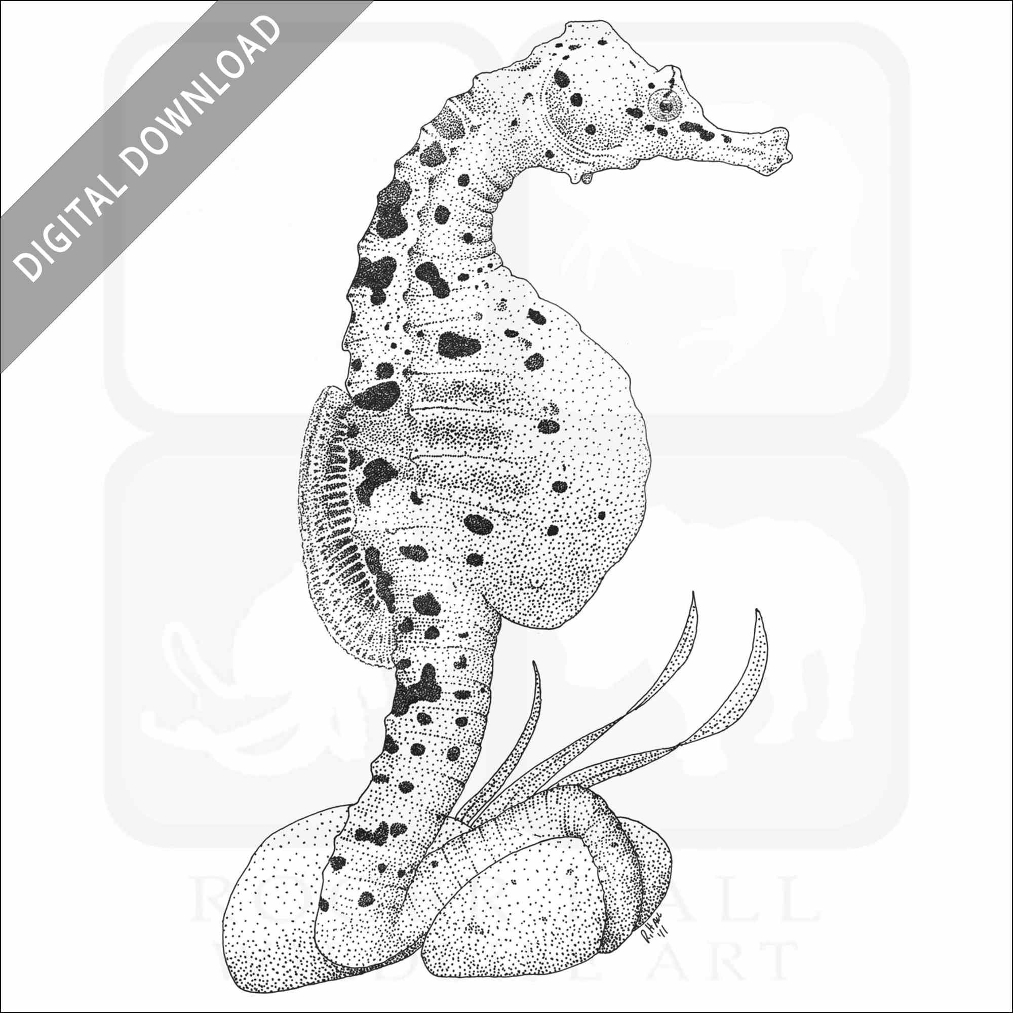 Stock art illustration of a Big-Belly Seahorse (Hippocampus abdominalis.) The illustration is available in black and white or color for immediate download.