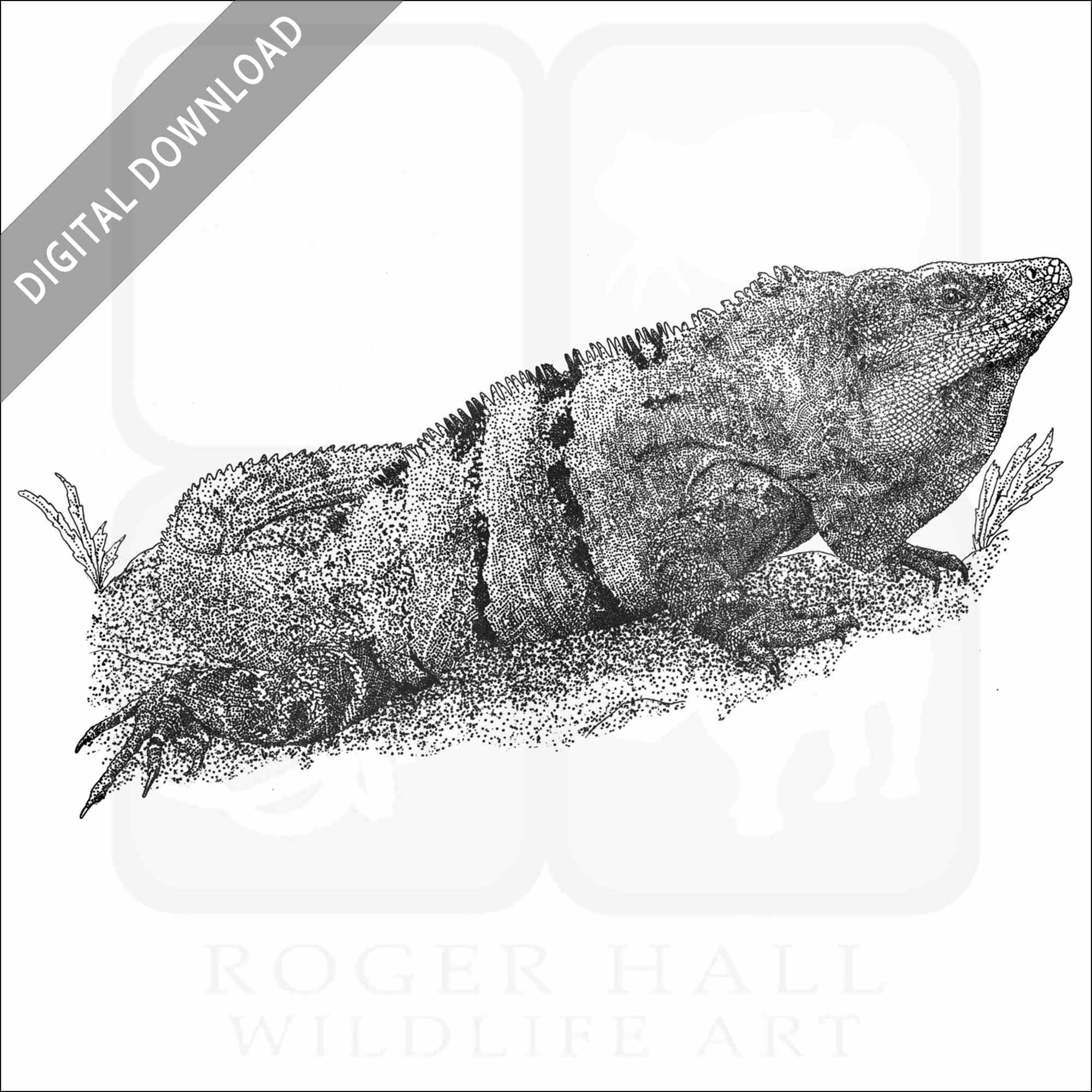 Stock art illustration of a Black Spiny-Tailed Iguana (Ctenosaura similis.) The illustration is available in black and white or color for immediate download.