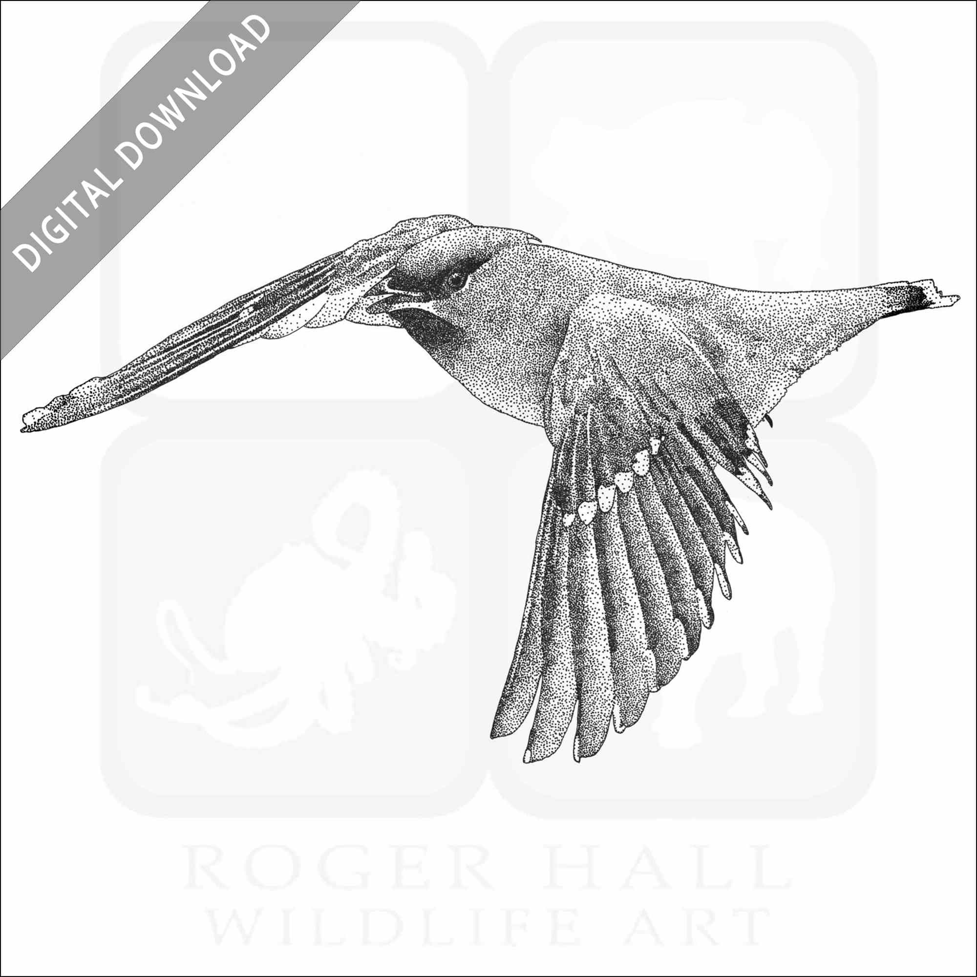 Stock art illustration of a Bohemian Waxwing (Bombycilla garrulus.) The illustration is available in black and white or color for immediate download.
