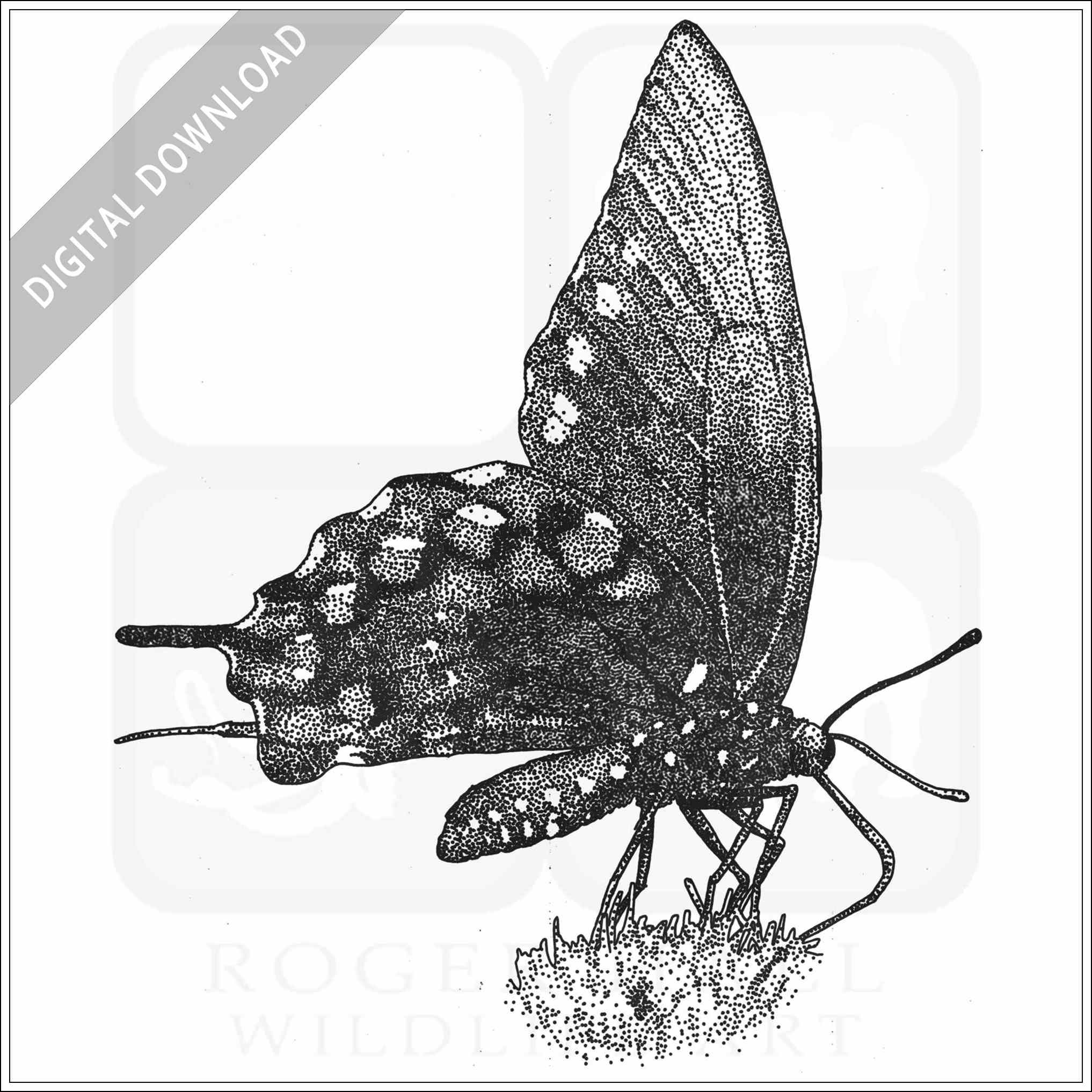 Stock art illustration of a California Pipevine Swallowtail Butterfly (Battus philenor hirsuta.)Â The illustration is available in black and white or color for immediate download.