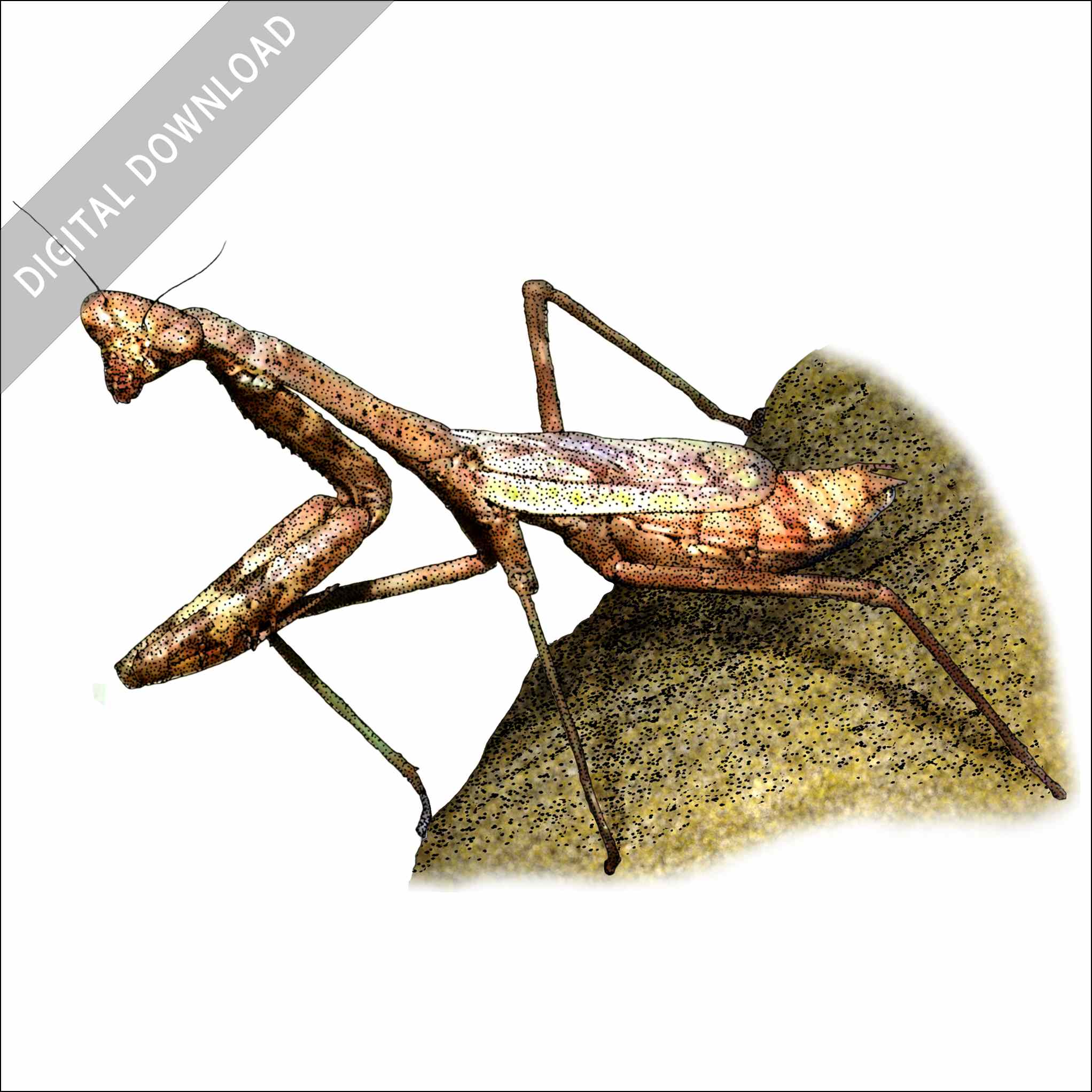 Stock art illustration of a Carolina Mantis (Stagmomantis carolina.)Â The illustration is available in black and white or color for immediate download.
