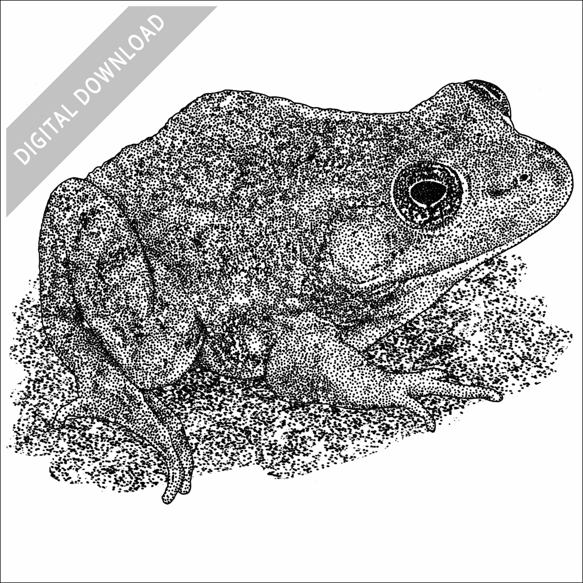 Stock art illustration of a Carpenter Frog (Rana virgatipes.)Â The illustration is available in black and white or color for immediate download.