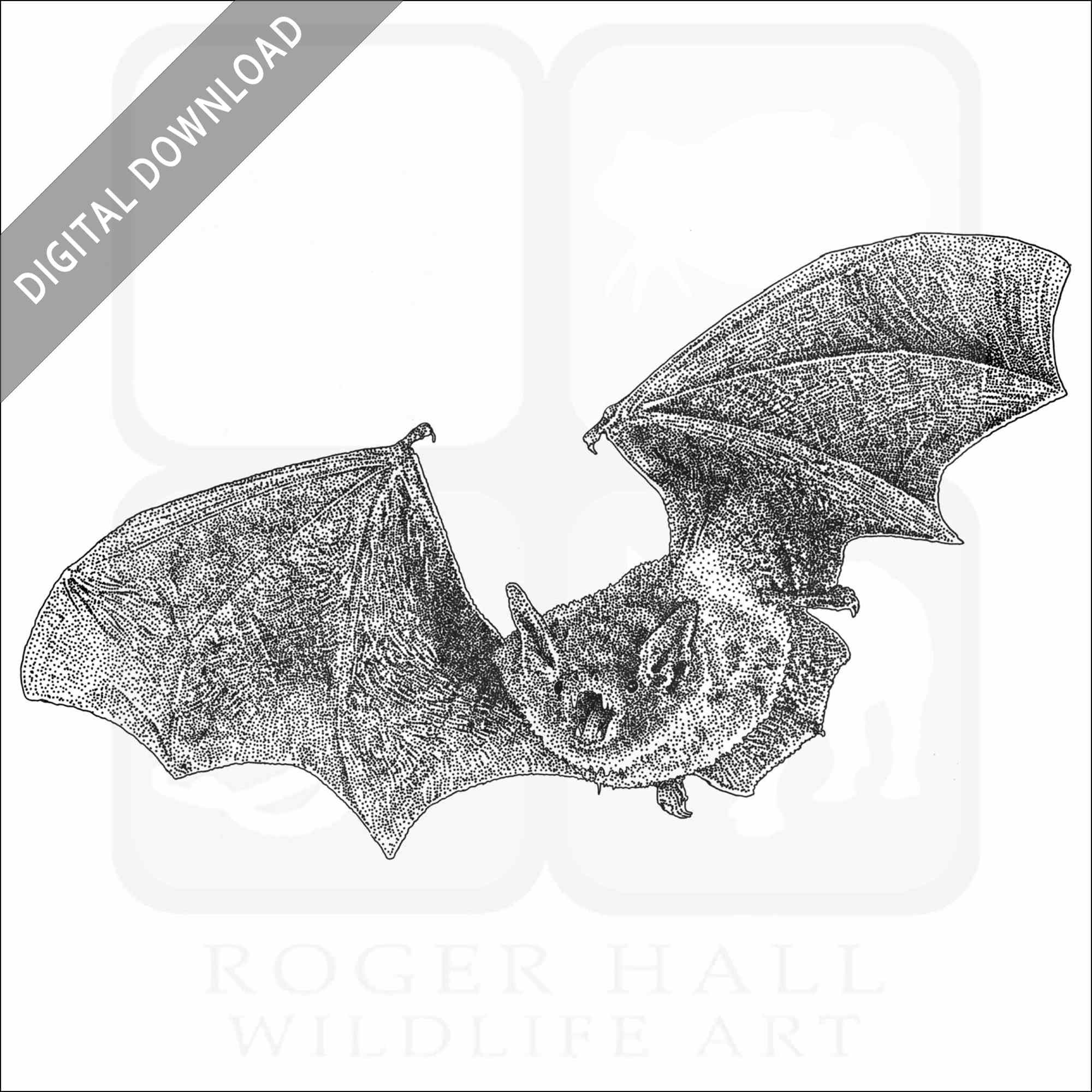 Stock art illustration of a Cave Bat or Cave Myotis (Myotis velifer.)Â The illustration is available in black and white or color for immediate download.