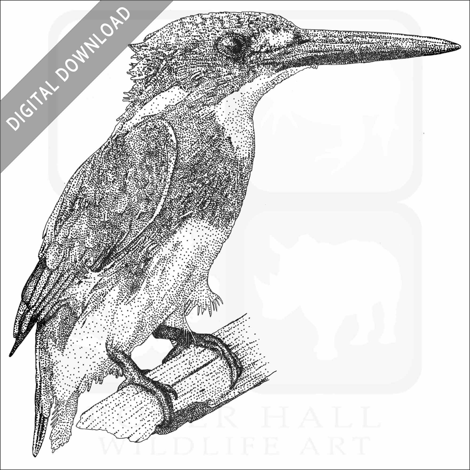 Stock art illustration of a Cerulean Kingfisher (Alcedo coerulescens.)Â The illustration is available in black and white or color for immediate download.