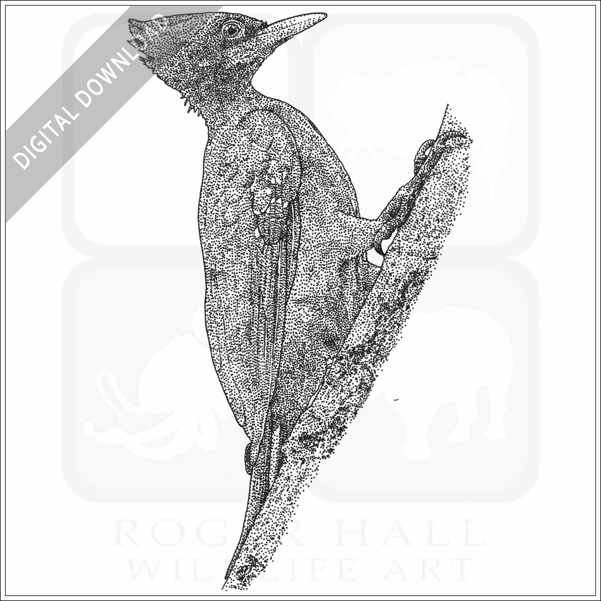 Stock art illustration of a Chestnut Woodpecker (Celeus elegans.)Â The illustration is available in black and white or color for immediate download.