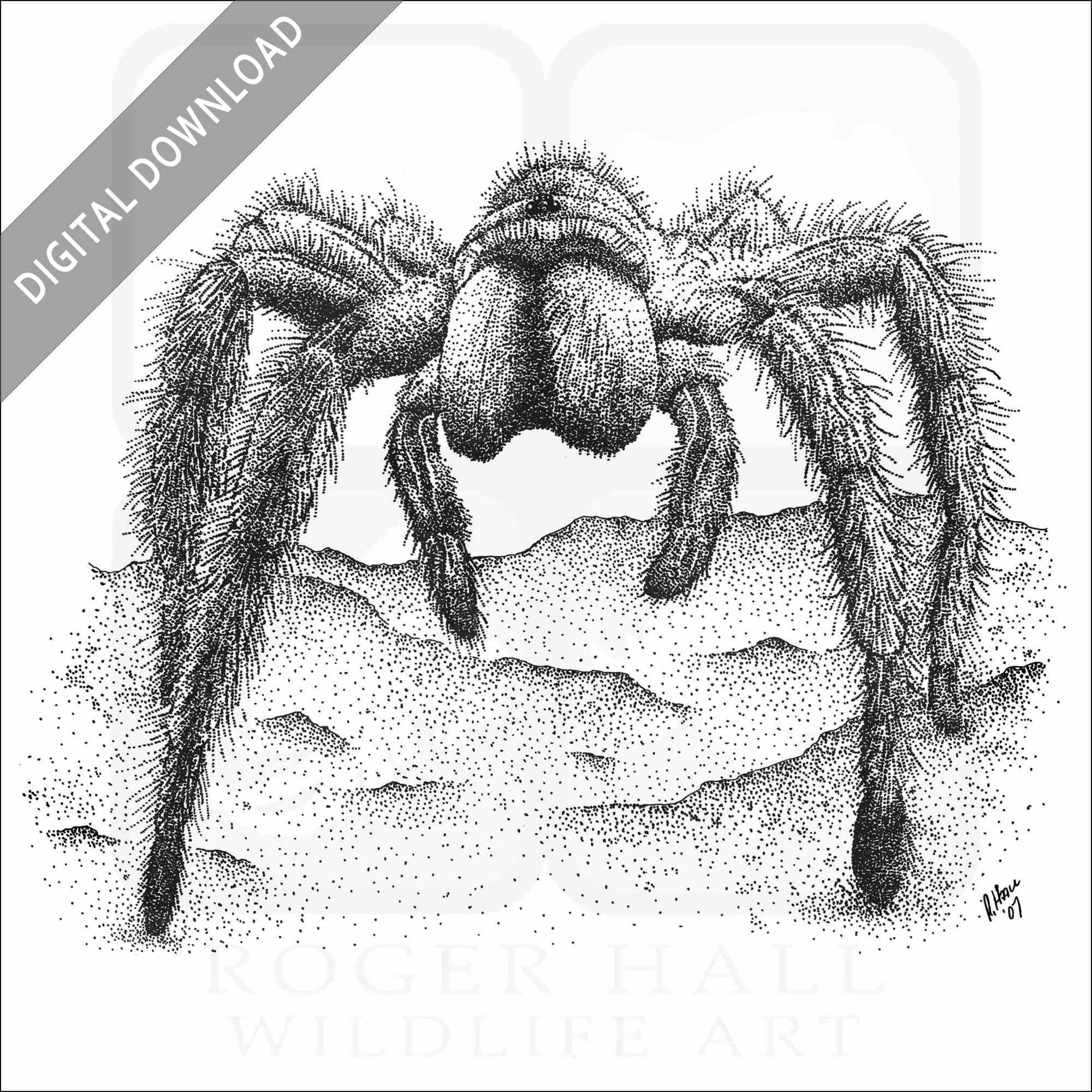 Stock art illustration of a Chilean Rose Tarantula (Grammostola rosea.)Â The illustration is available in black and white or color for immediate download.