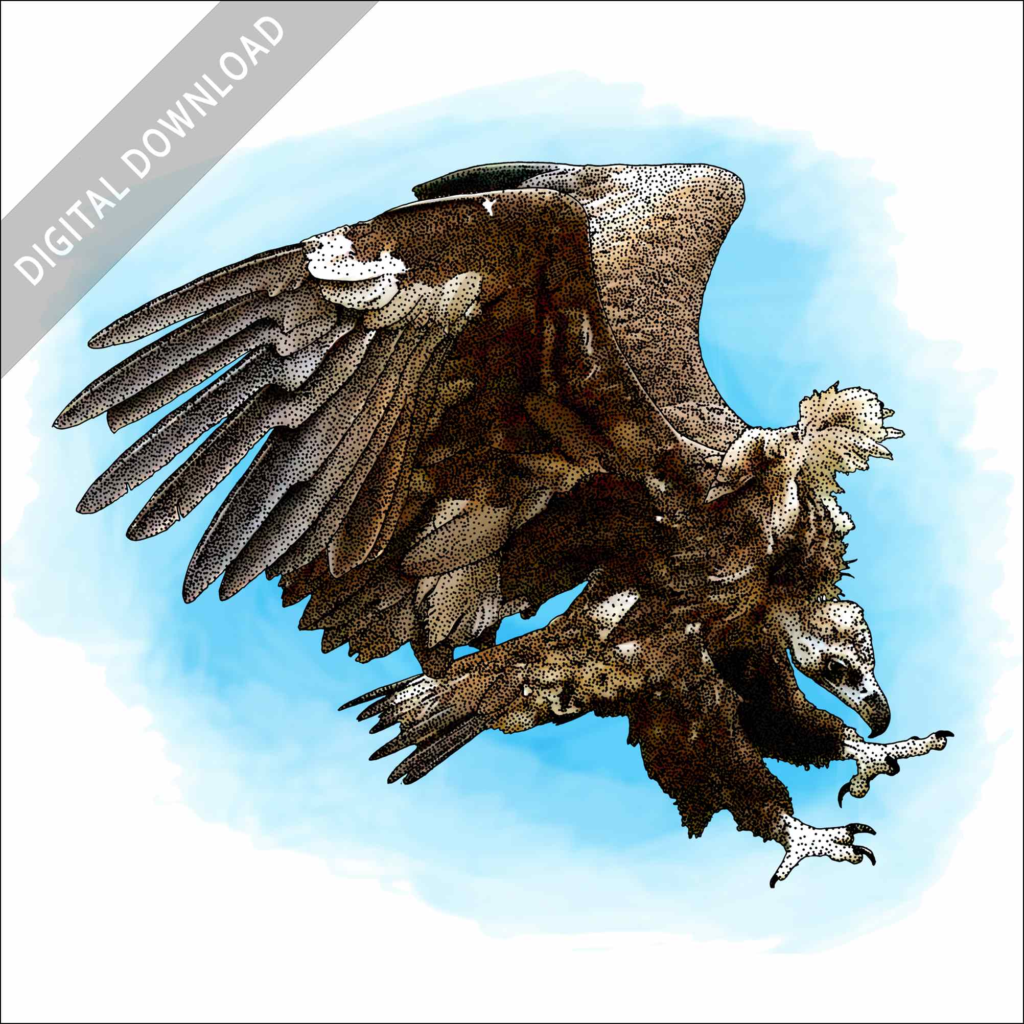 Stock art illustration of a Cinereous Vulture (Aegypius monachus.)Â The illustration is available in black and white or color for immediate download.