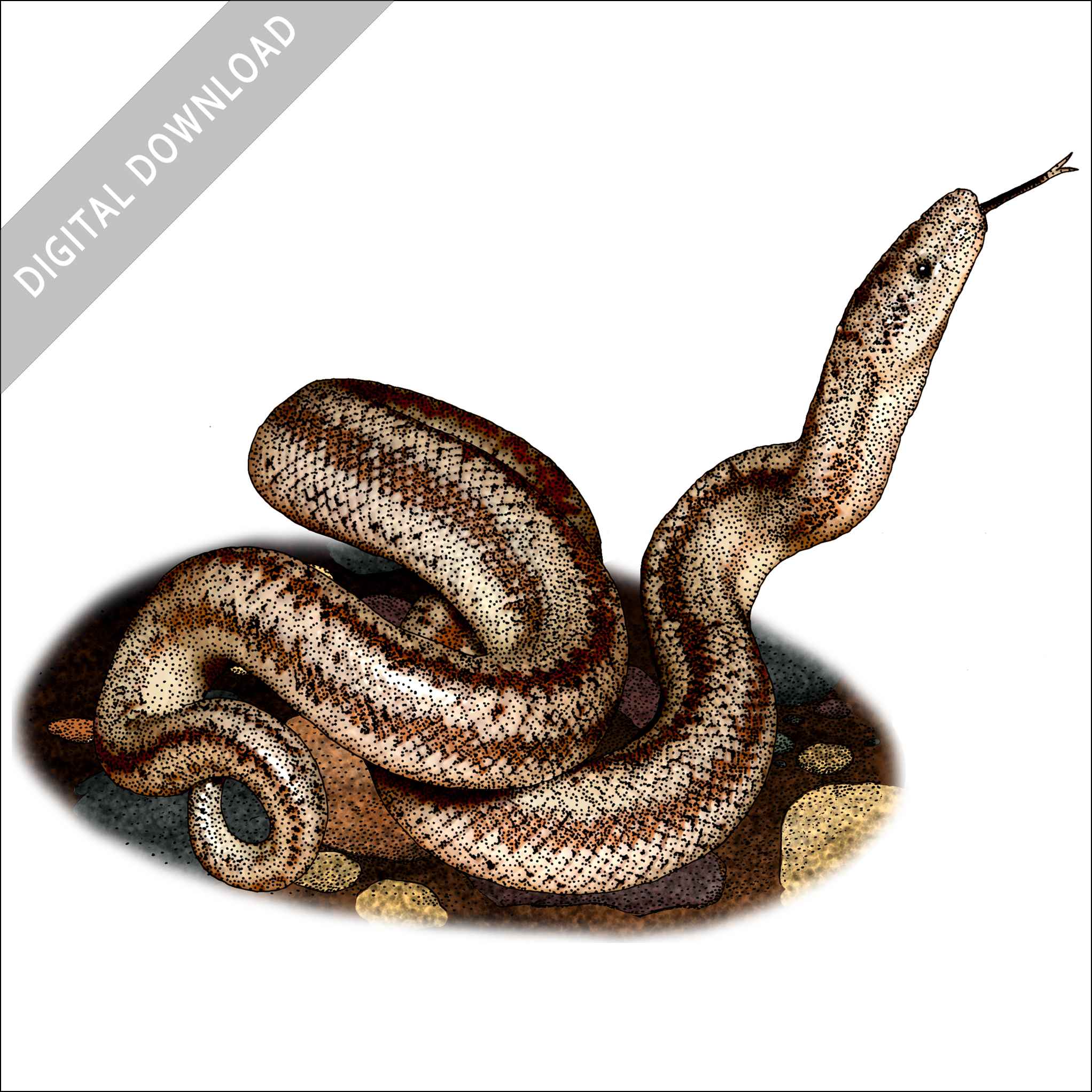 Stock art illustration of a Coastal Rosy Boa (Lichanura trivirgata roseofusca.)Â The illustration is available in black and white or color for immediate download.