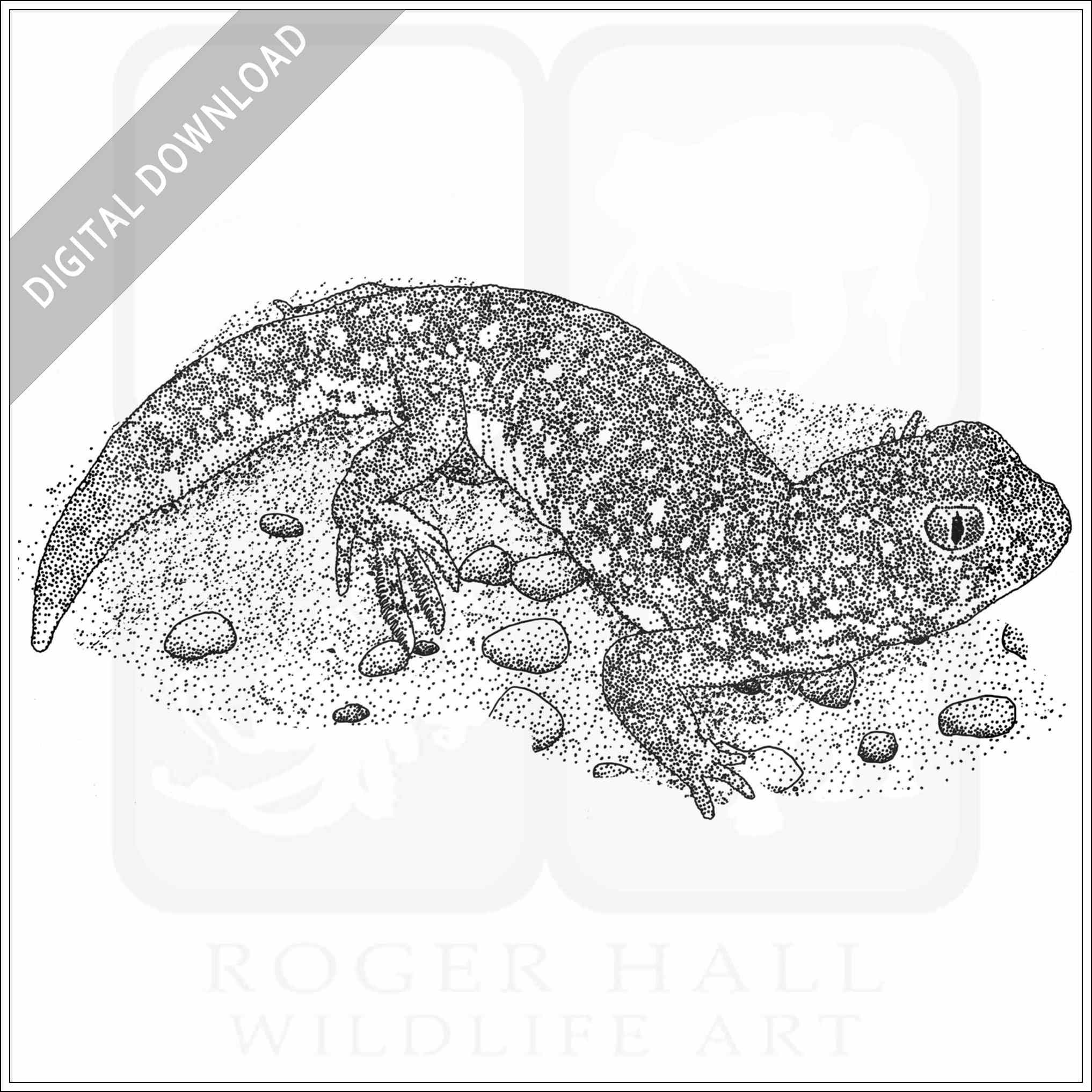 Stock art illustration of a Common Barking Gecko (Ptenopus garrulus.)Â The illustration is available in black and white or color for immediate download.