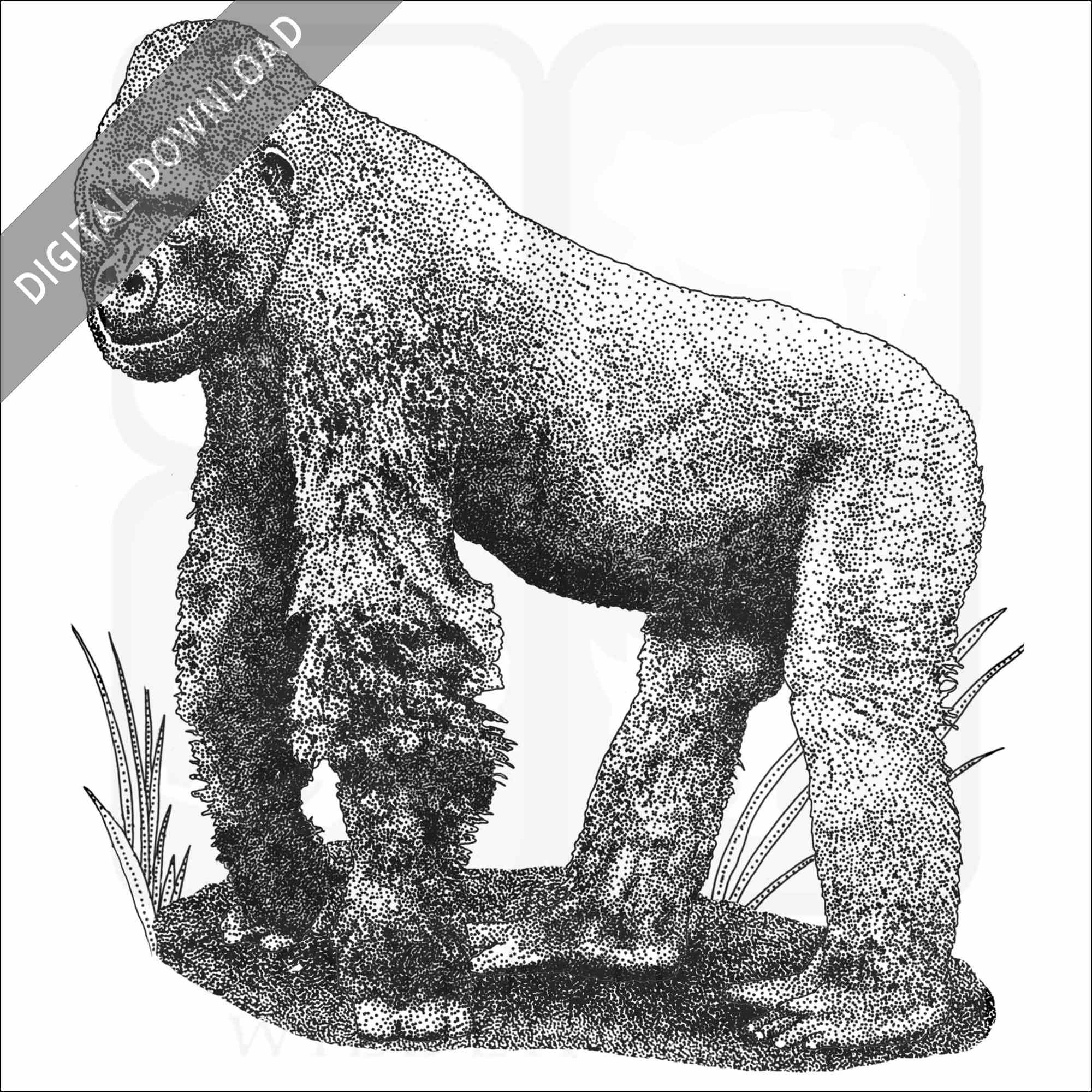 Stock art illustration of a Cross River Gorilla (Gorilla gorilla diehli.)Â The illustration is available in black and white or color for immediate download.
