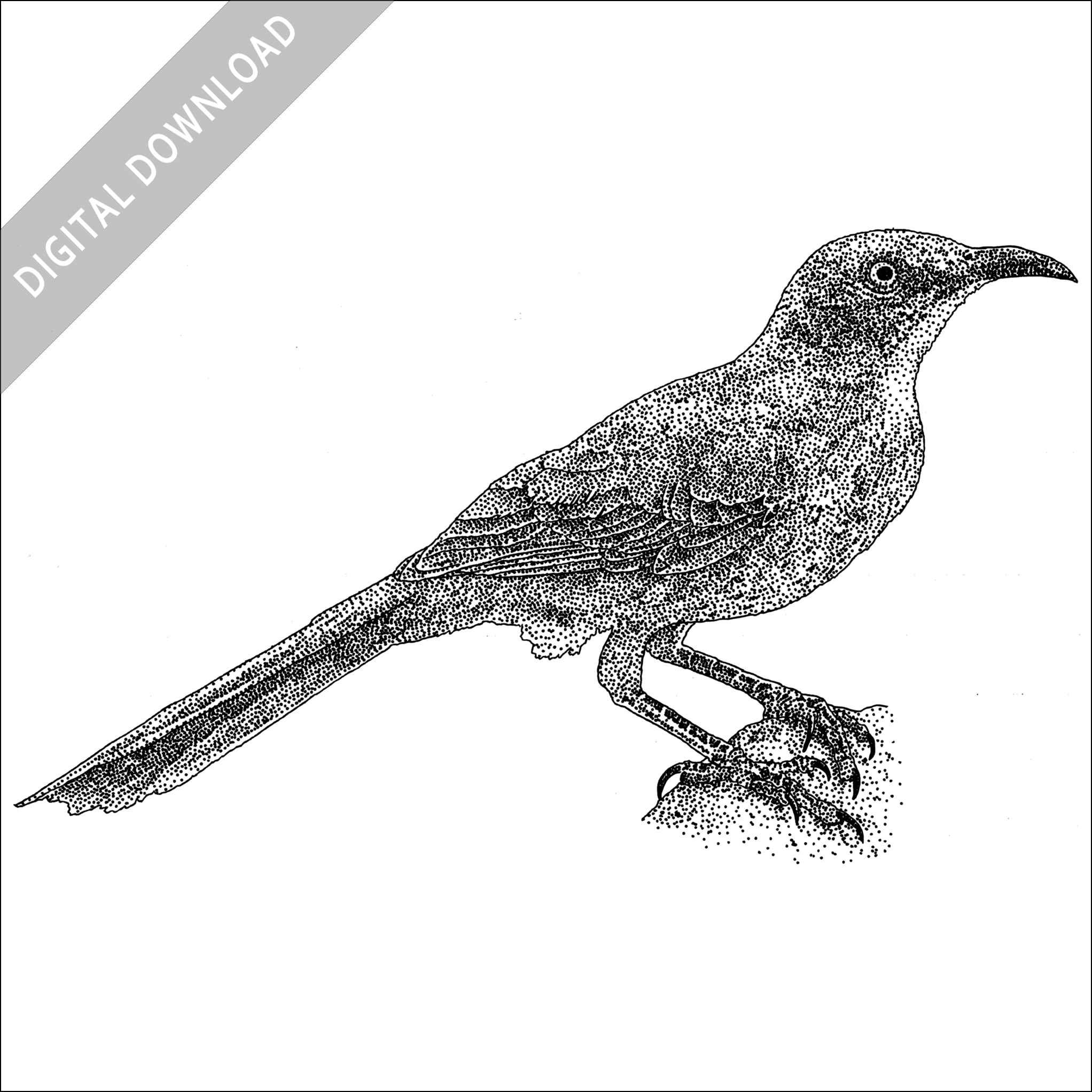 Stock art illustration of a Curve-Billed Thrasher (Toxostoma curvirostre.)Â The illustration is available in black and white or color for immediate download.