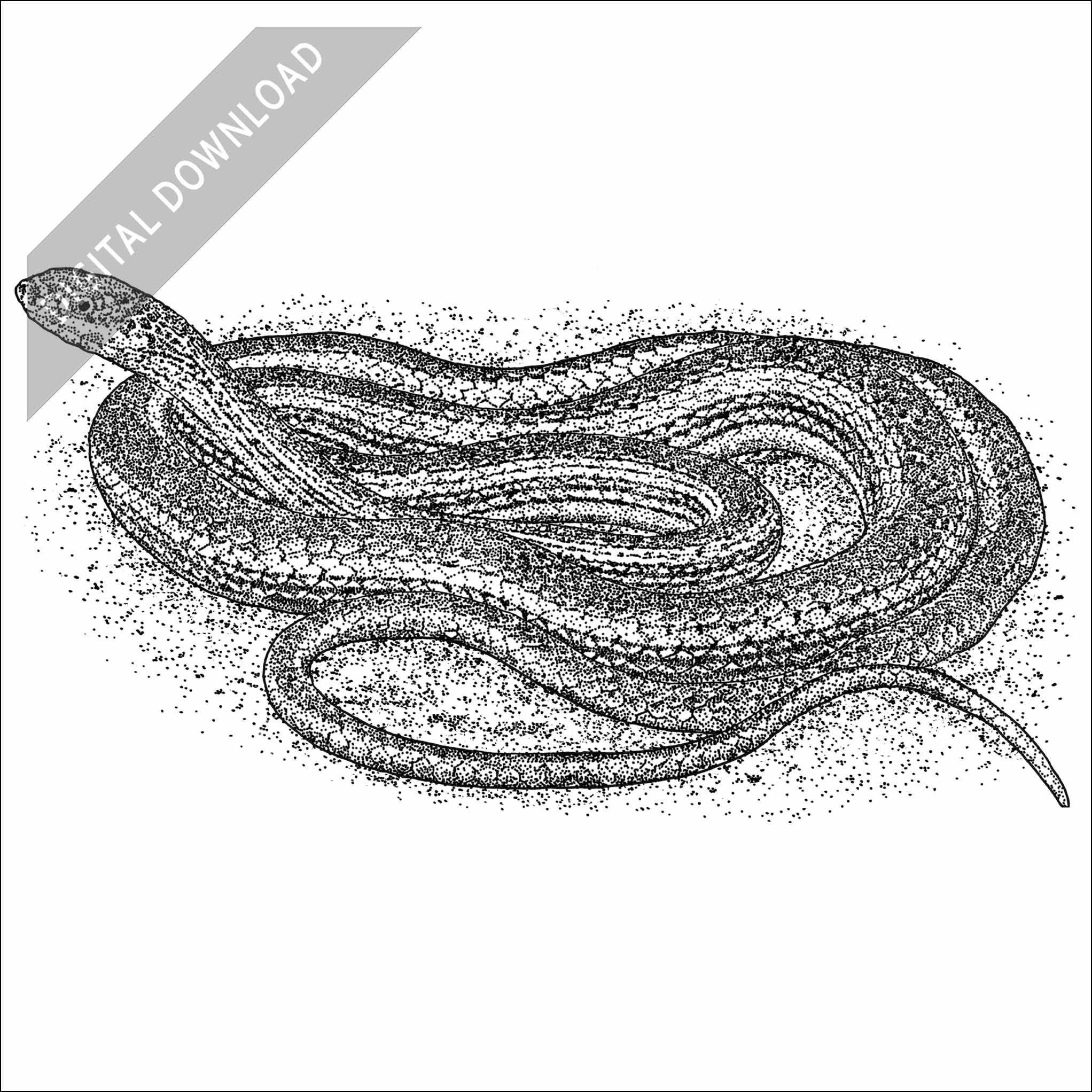 Stock art illustration of a Desert Striped Whipsnake (Coluber taeniatus taeniatus.)  The illustration is available in black and white or color for immediate download.
