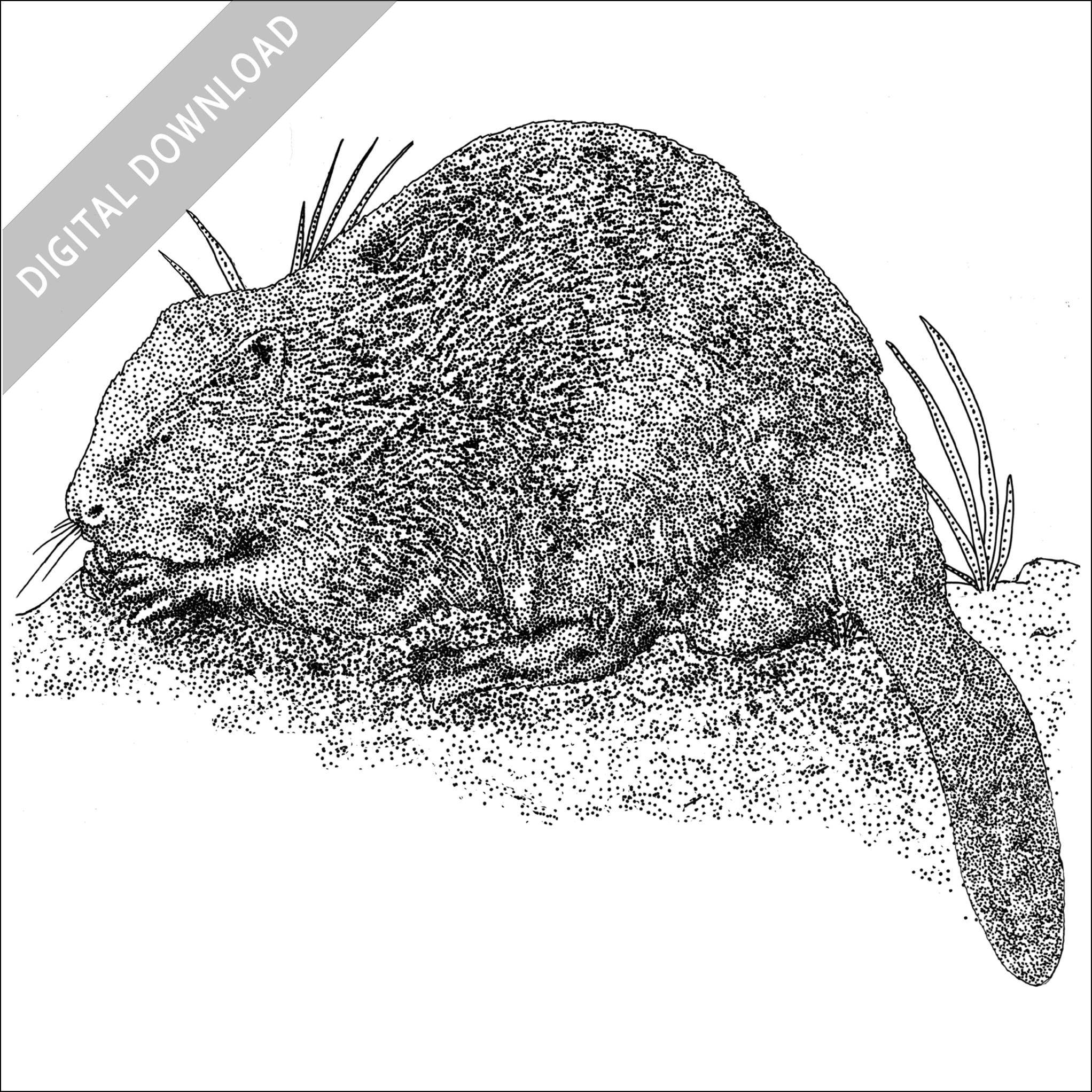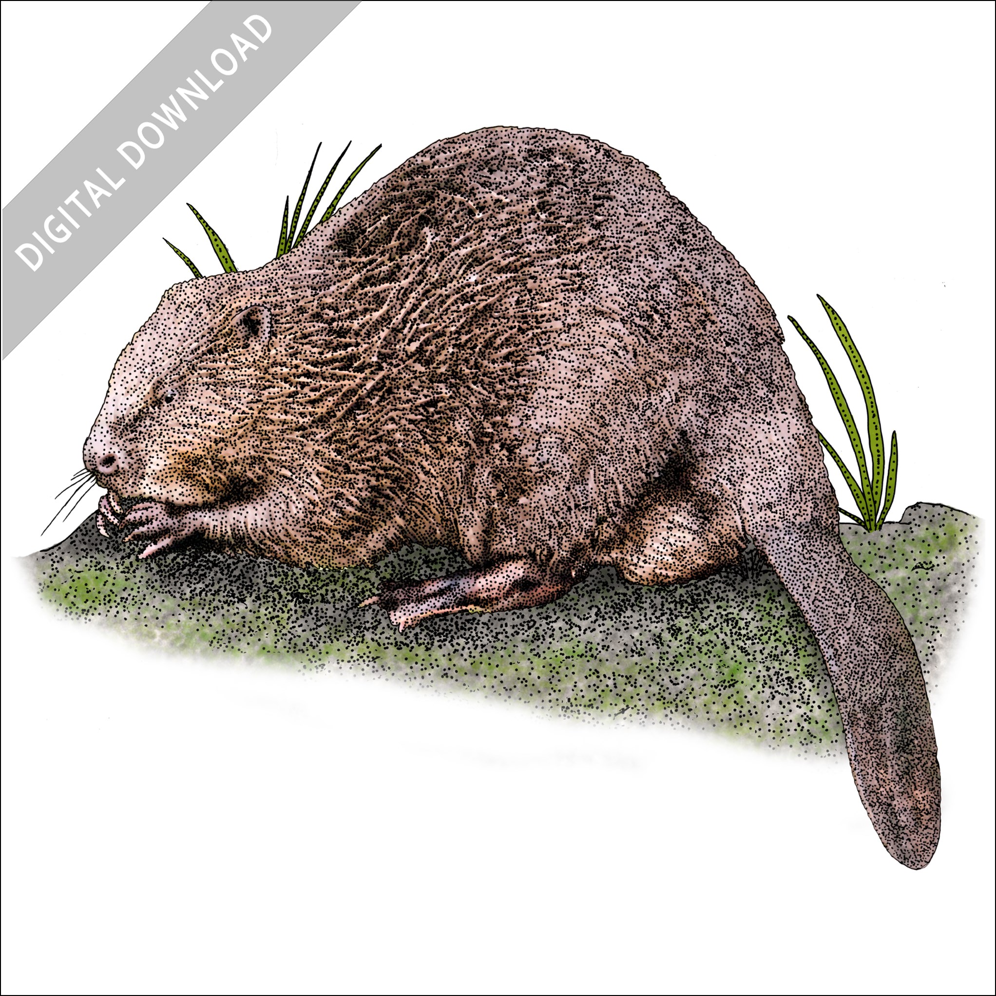 Stock art illustration of a Eurasian Beaver (Castor fiber.)Â The illustration is available in black and white or color for immediate download.