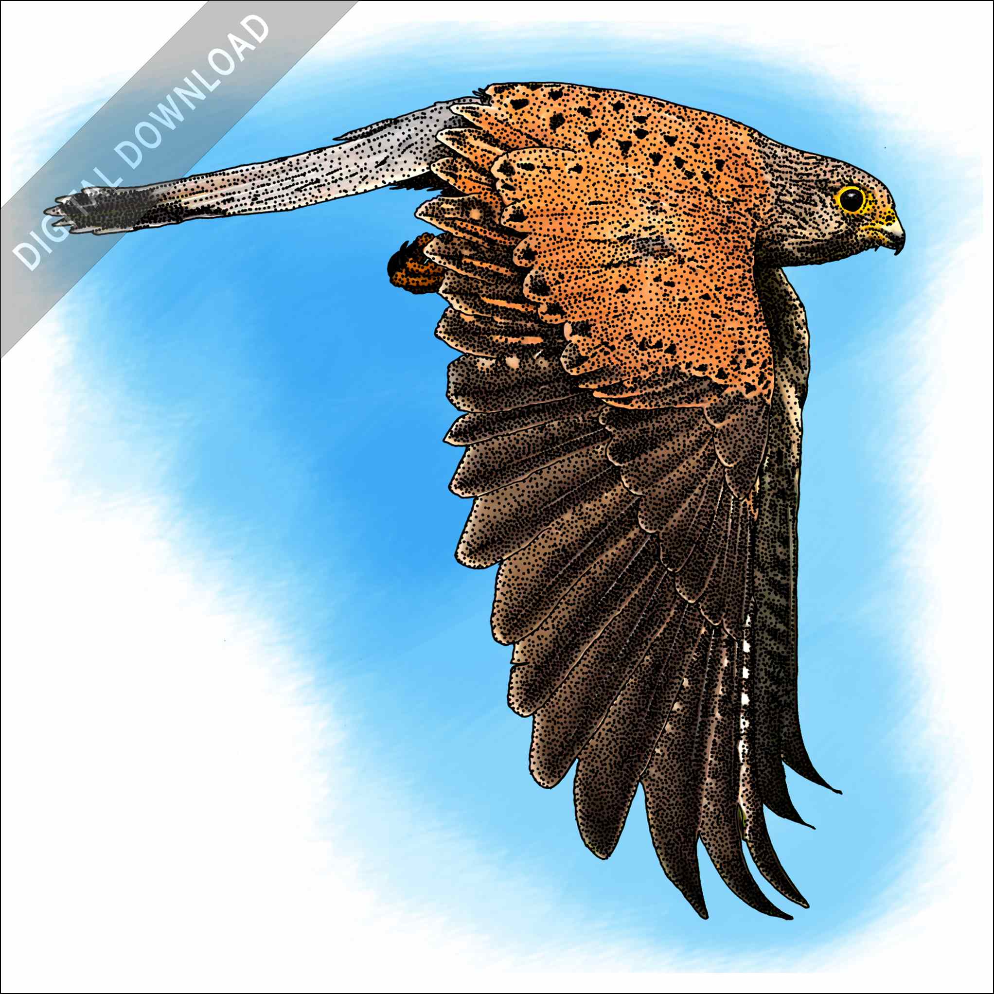 Stock art illustration of an Eurasian Kestrel (Falco tinnunculus.)Â The illustration is available in black and white or color for immediate download
