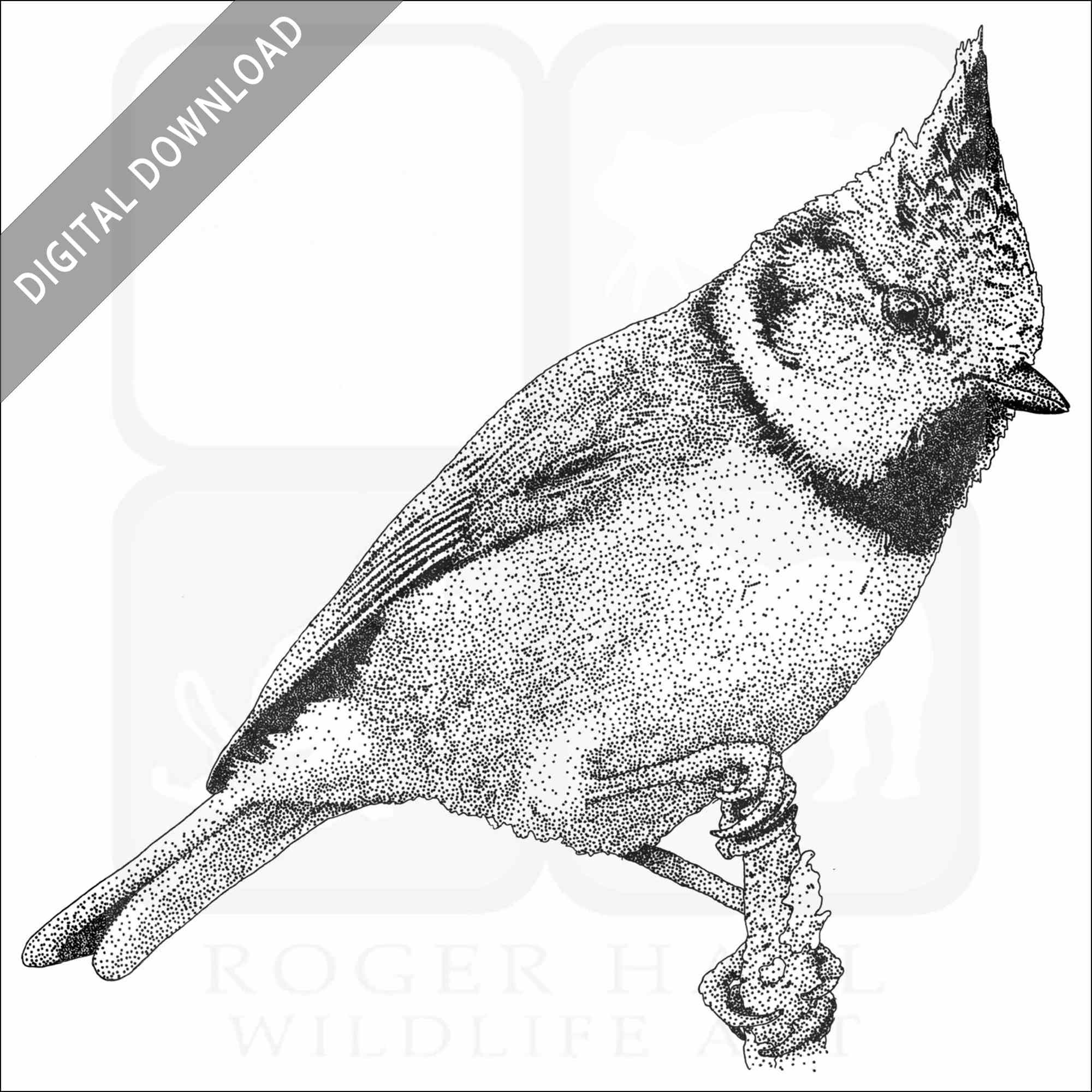 Stock art illustration of a European Crested Tit (Lophophanes cristatus.)Â The illustration is available in black and white or color for immediate download.