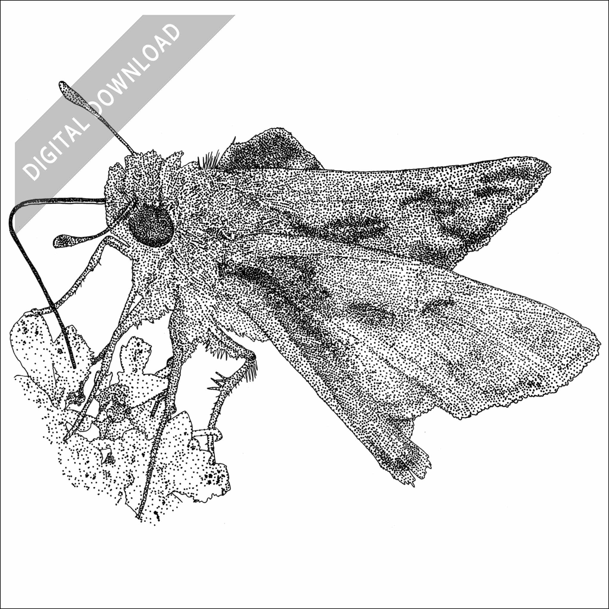 Stock art illustration of a Fiery Skipper (Hylephila phyleus.)Â The illustration is available in black and white or color for immediate download.