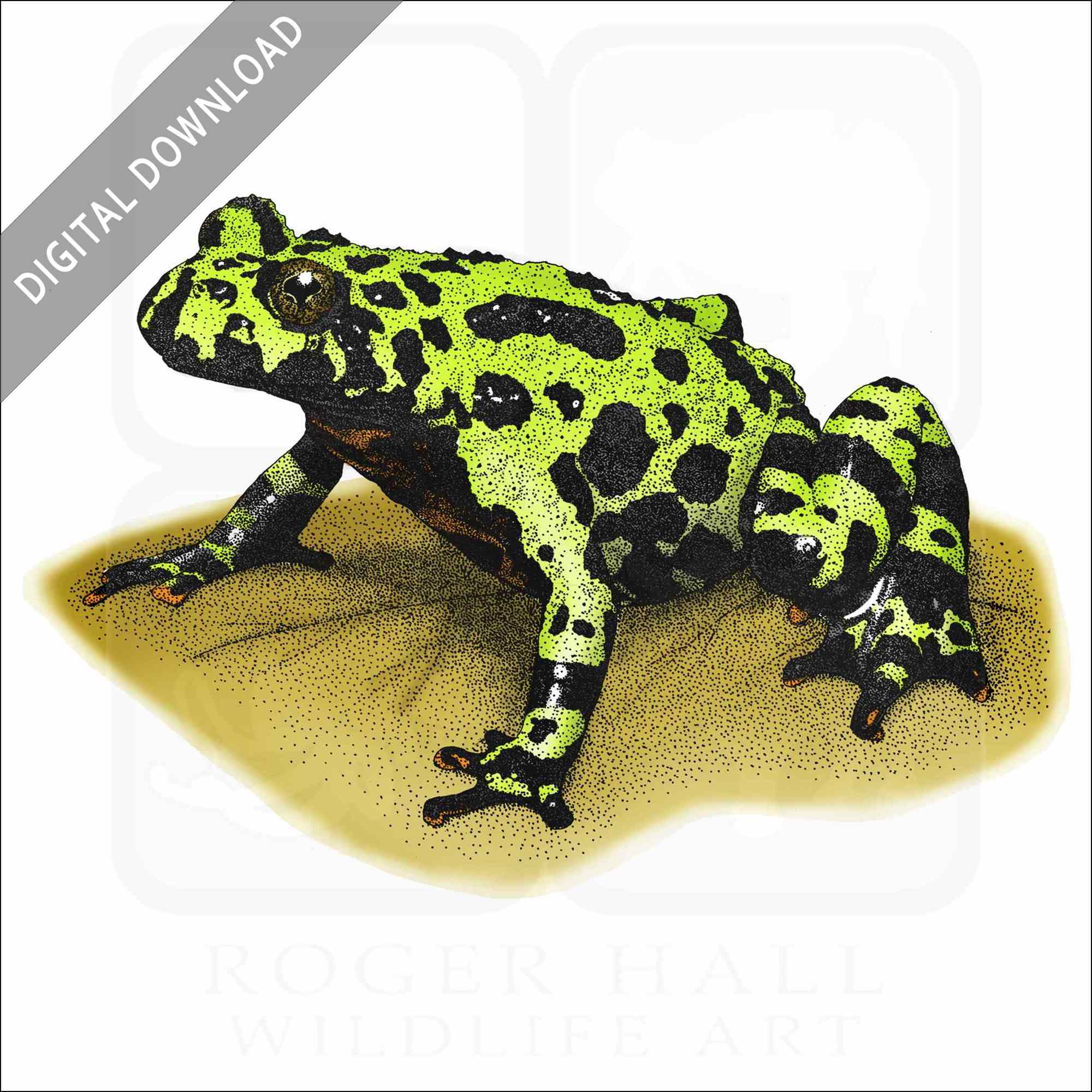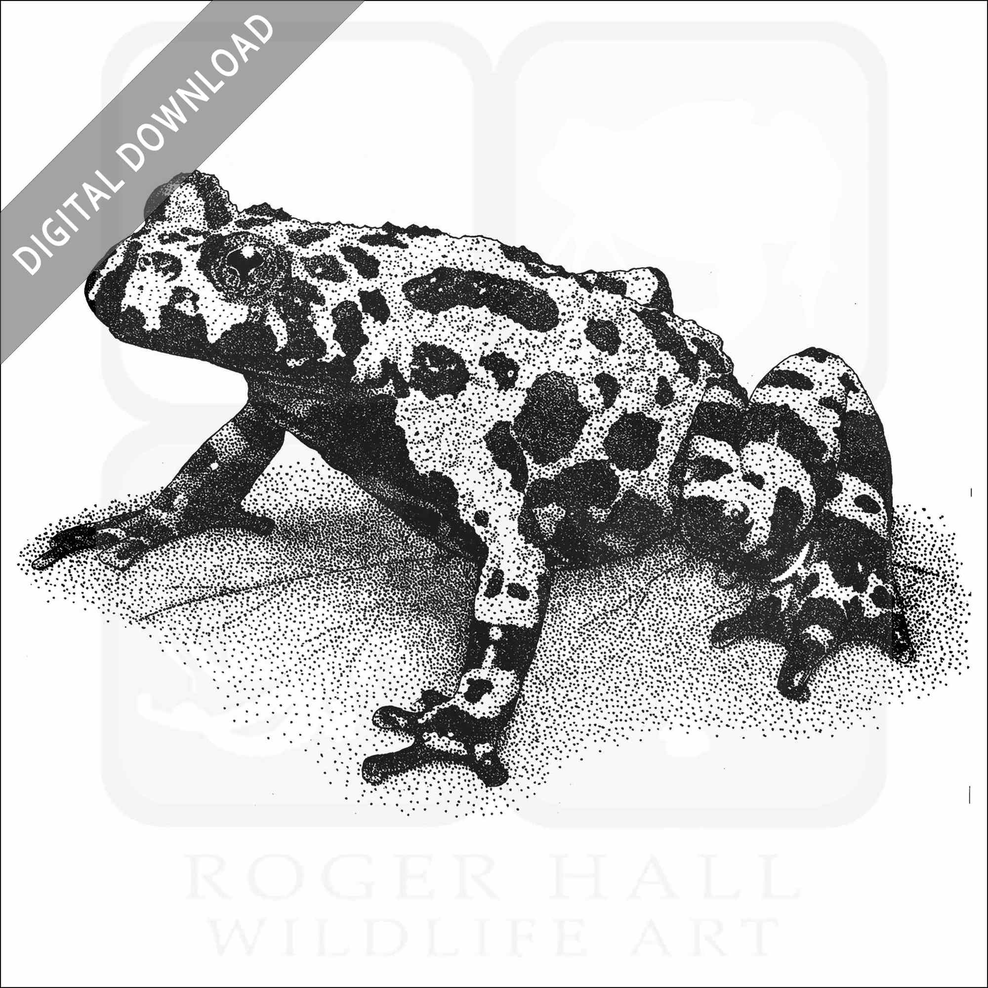 Stock art illustration of a Fire-Bellied Toad (Bombina orientalis.) The illustration is available in black and white or color for immediate download.