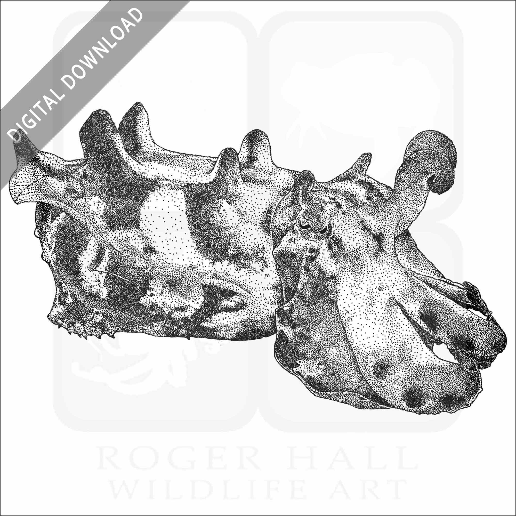 Stock art illustration of a Flamboyant Cuttlefish (Metasepia pfefferi.) The illustration is available in black and white or color for immediate download.