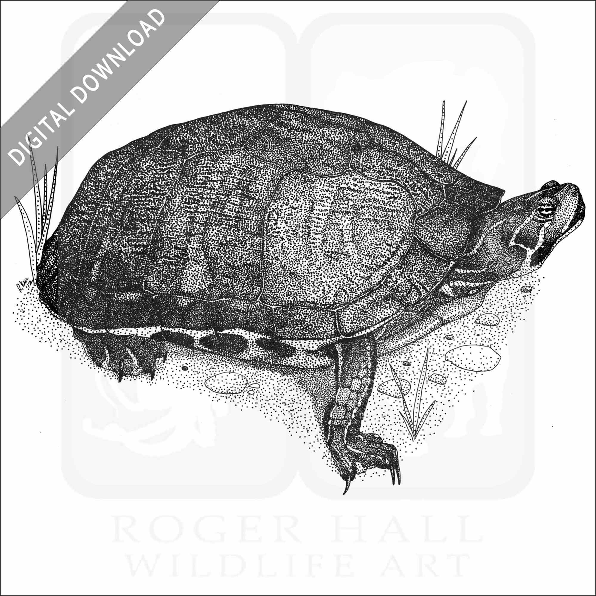 Stock art illustration of a Florida Red-Bellied Turtle (Pseudemys nelsoni.) The illustration is available in black and white or color.