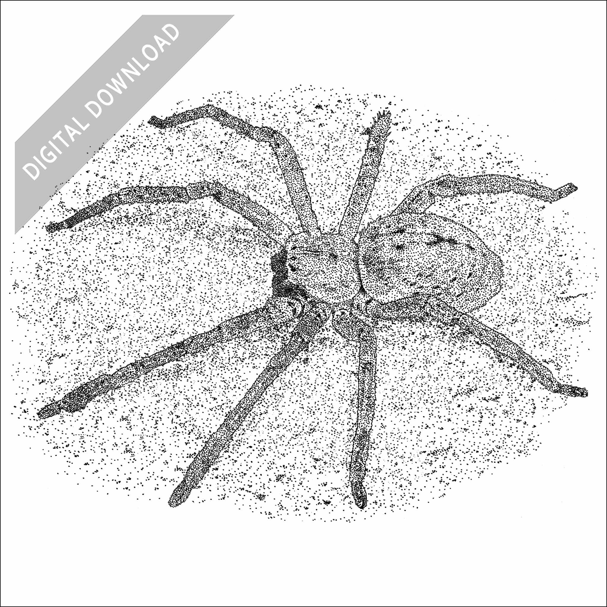 Stock art illustration of a Giant Crab or Huntsman Spider (Olios giganteus.)Â The illustration is available in black and white or color for immediate download.
