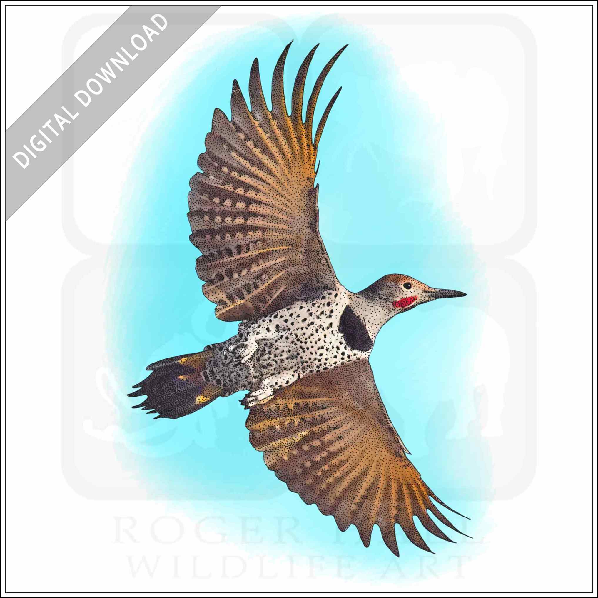 Stock art illustration of a Gilded Flicker (Colaptes chrysoides.)The illustration is available in black and white or color for immediate download.