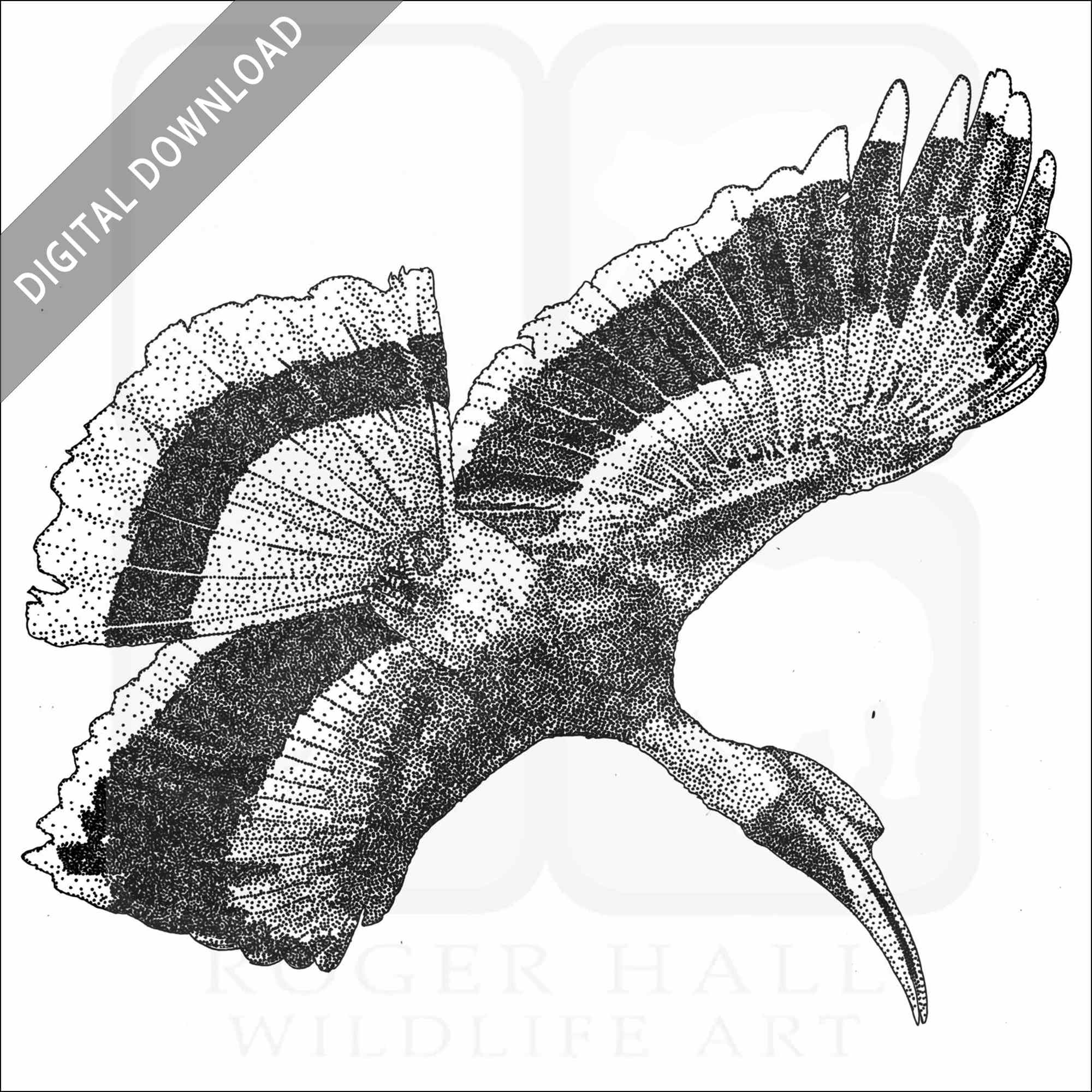 Stock art illustration of a Great Indian Hornbill (Buceros bicornis.)Â The illustration is available in black and white or color for immediate download.