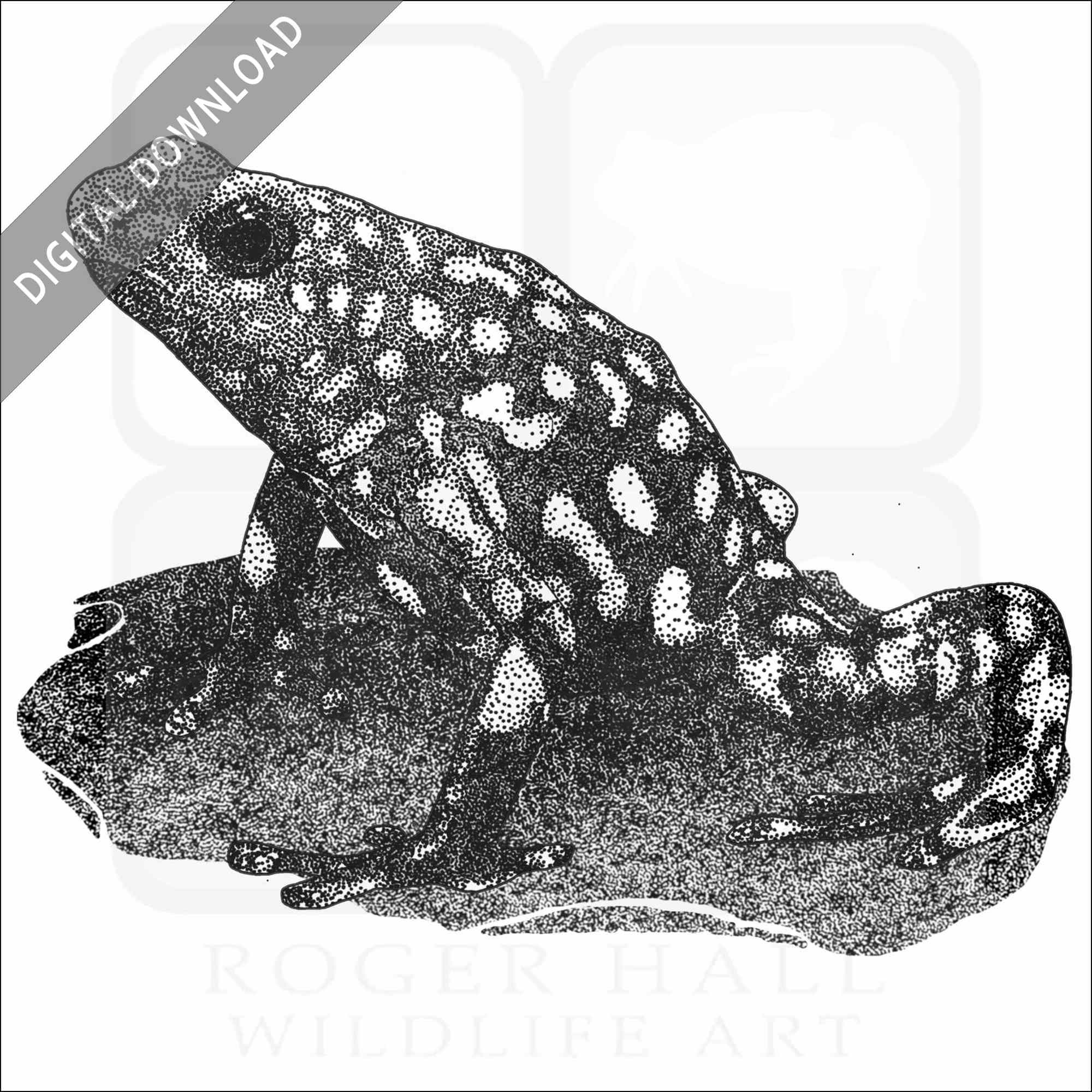Stock art illustration of a Harlequin Poison Dart Frog (Oophaga histrionica.)Â The illustration is available in black and white or color for immediate download.