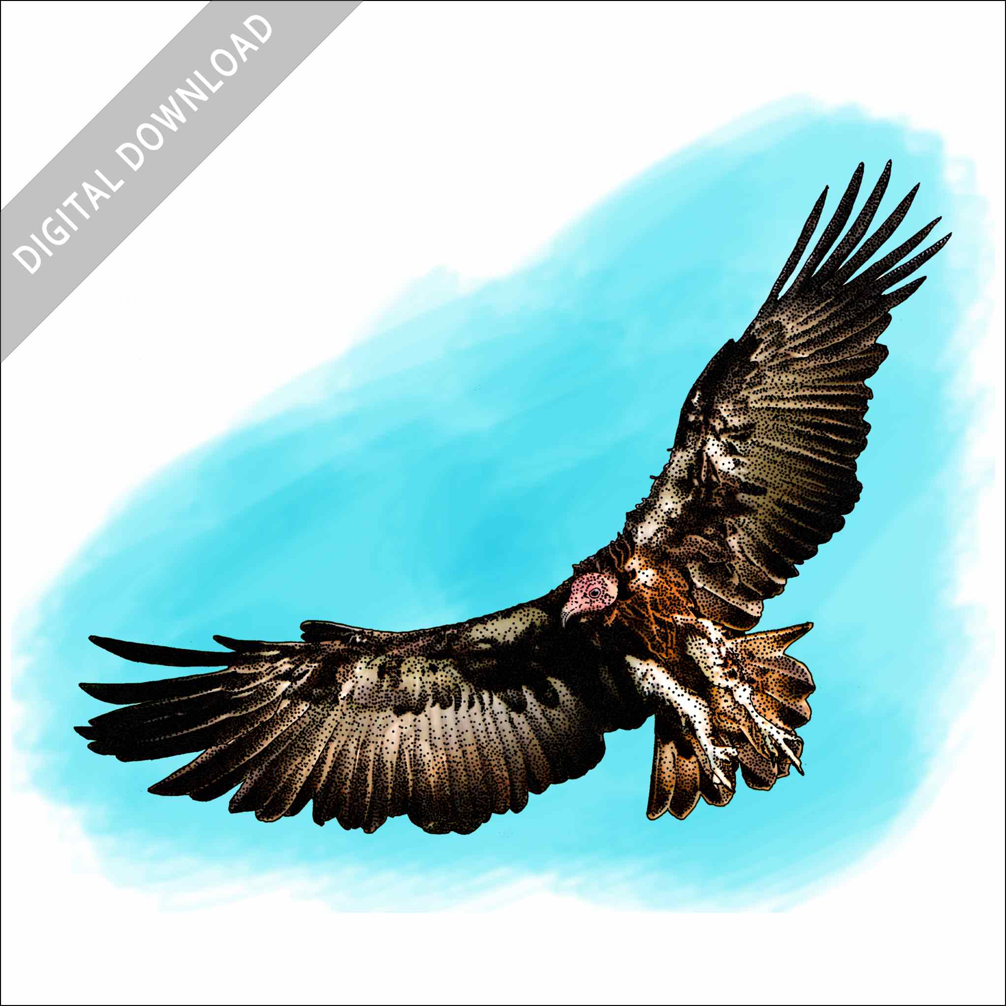 Stock art illustration of a Hooded Vulture (Necrosyrtes monachus.)Â The illustration is available in black and white or color for immediate download.