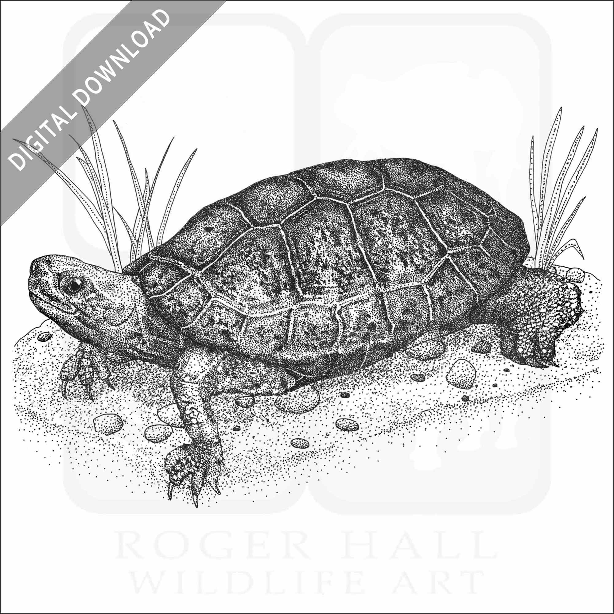 Stock art illustration of a Japanese Pond Turtle (Mauremys japonica.)Â The illustration is available in black and white or color for immediate download.