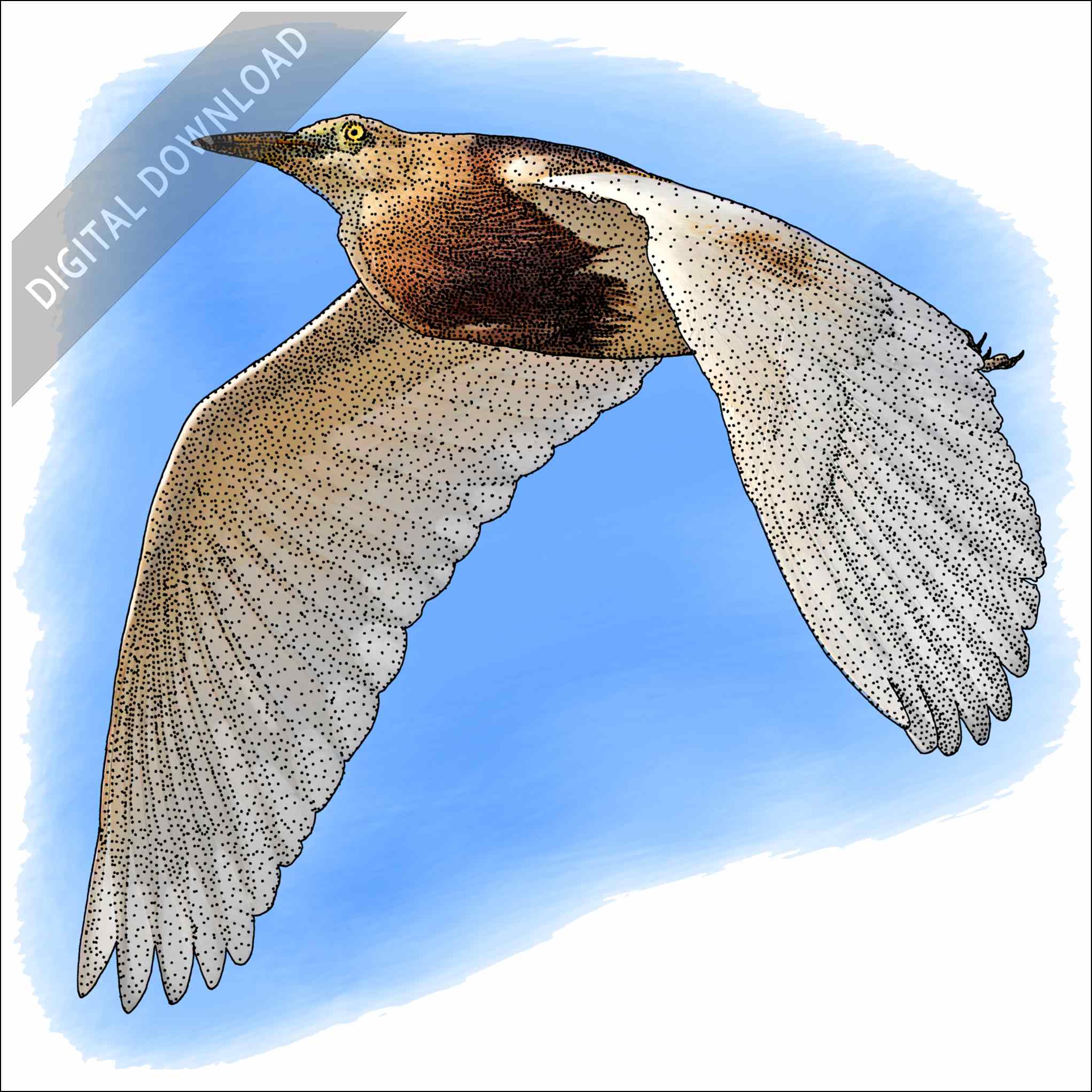 Stock art illustration of a Javan Pond Heron (Ardeola speciosa.)Â The illustration is available in black and white or color for immediate download.