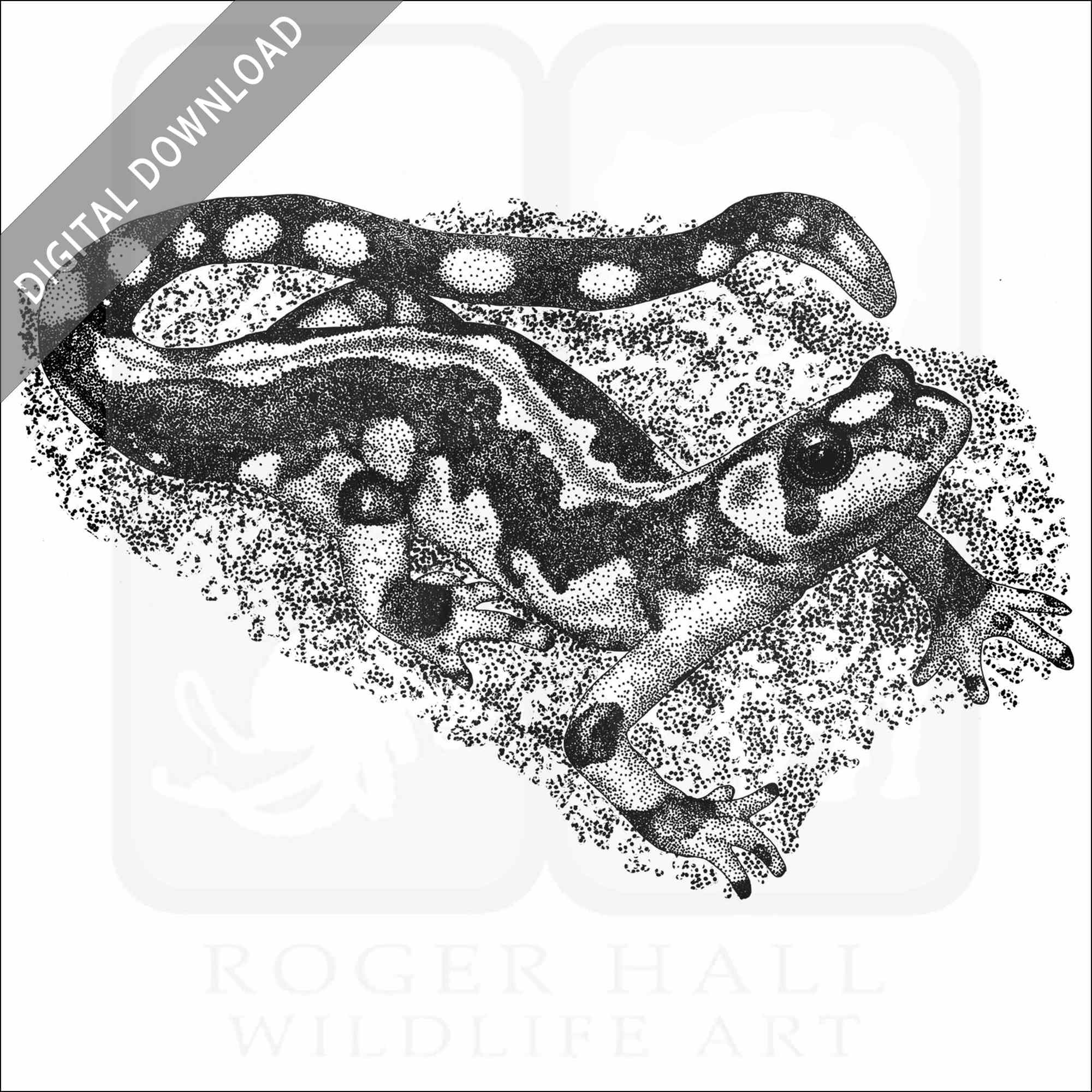 Stock art illustration of a Kaiser’s Spotted Newt (Neurergus kaiseri.)Â The illustration is available in black and white or color for immediate download.