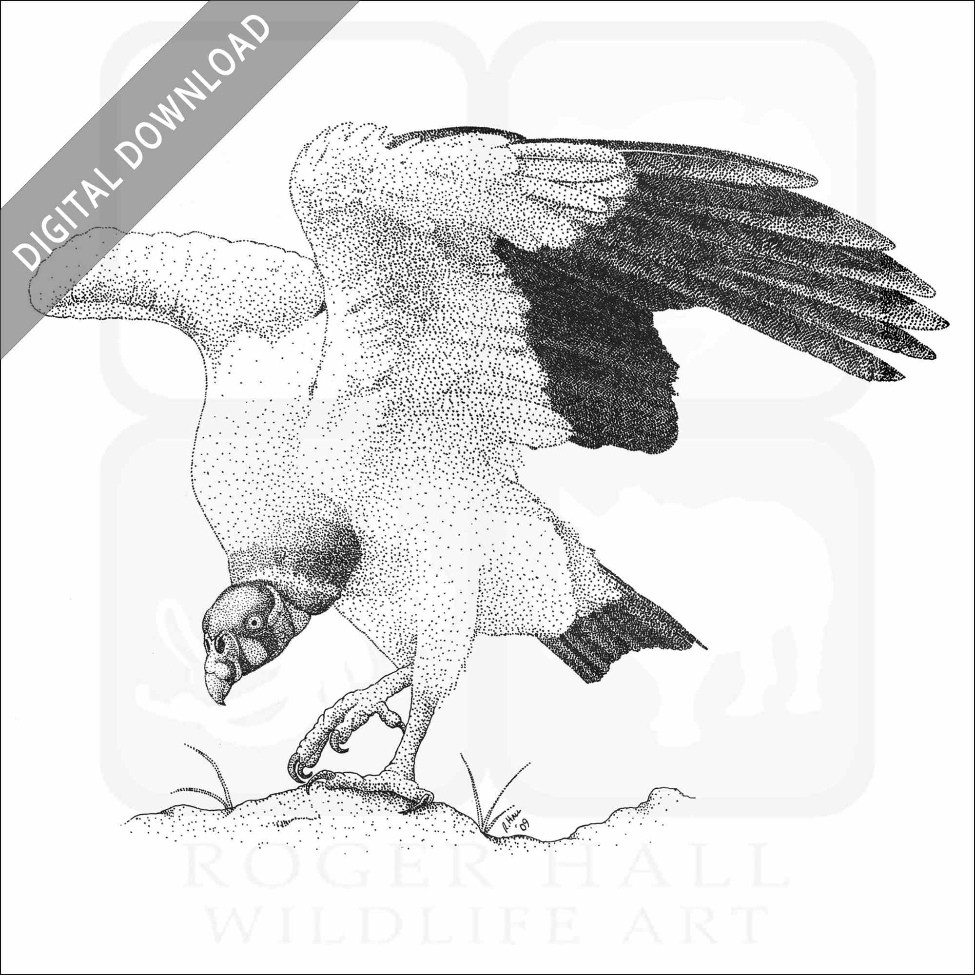 Stock art illustration of a King Vulture (Sarcoramphus papa.) The illustration is available in black and white or color for immediate download.