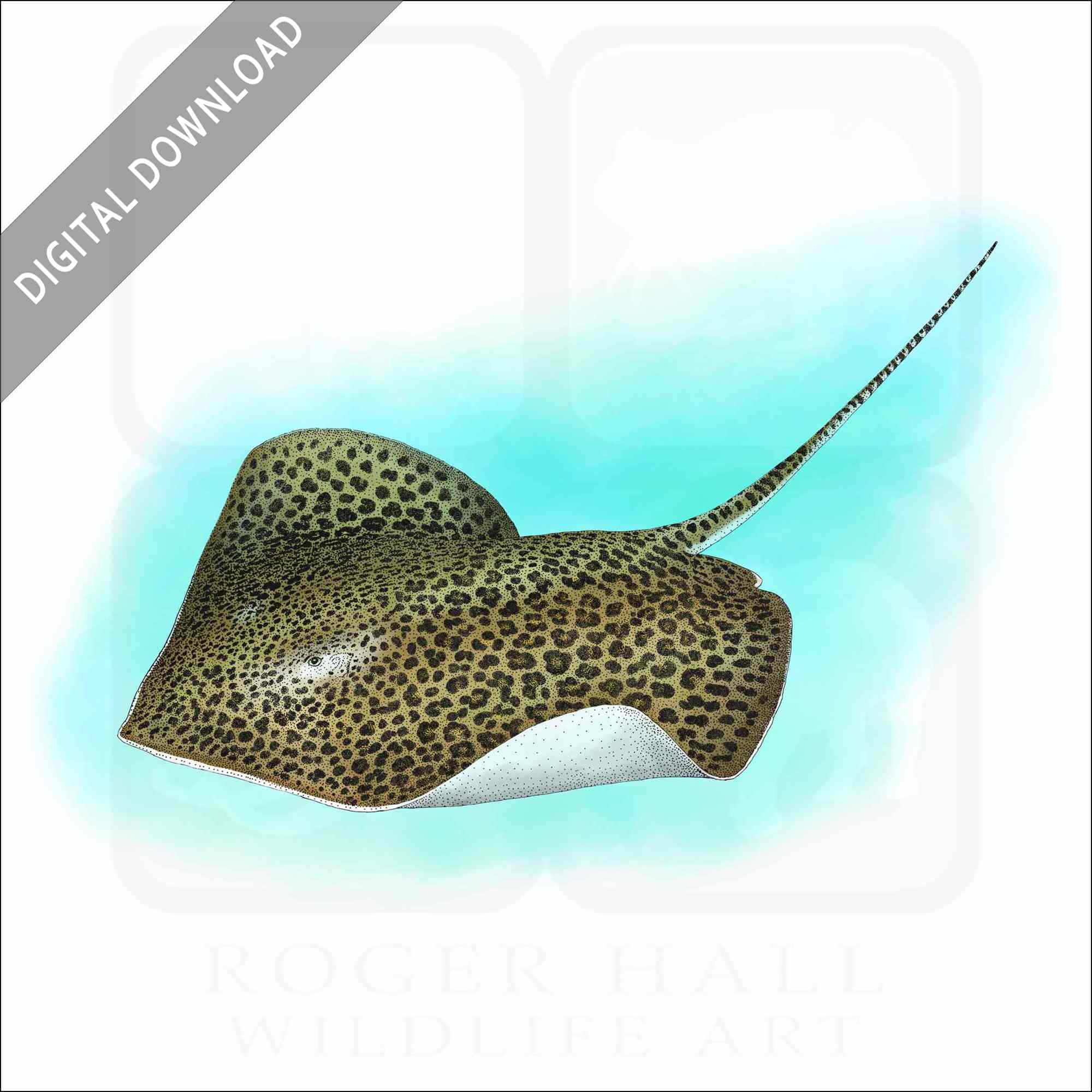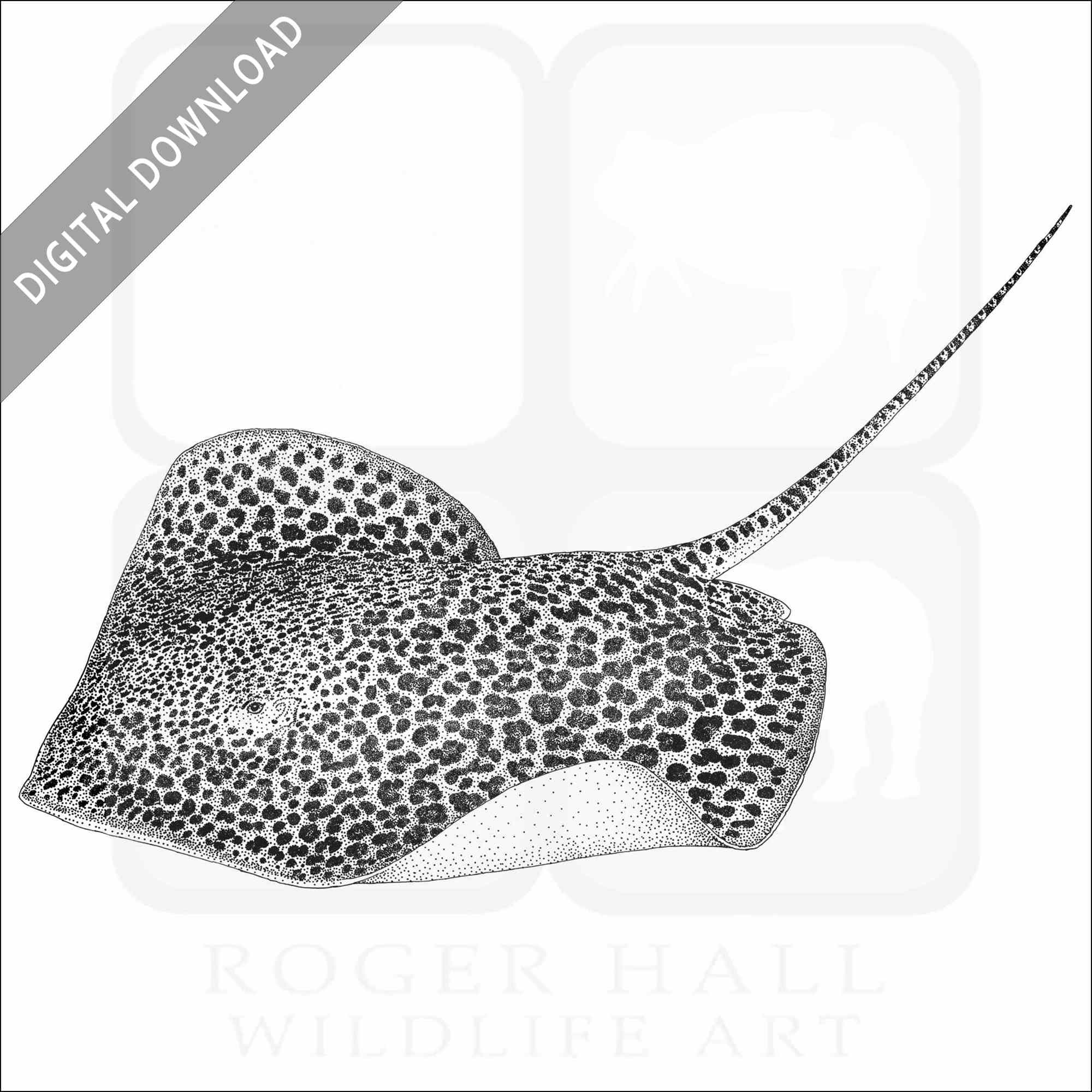 Stock art illustration of a Leopard Whipray (Himantura leoparda.)Â The illustration is available in black and white or color for immediate download.