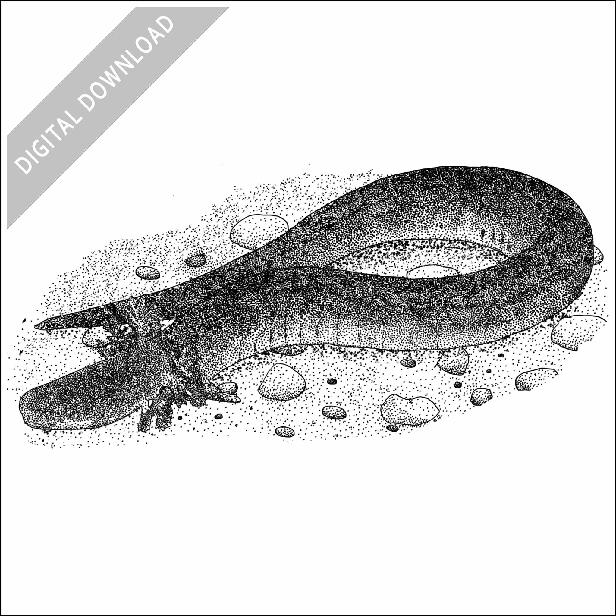 Stock art illustration of a Lesser Siren (Siren intermedia.)Â The illustration is available in black and white or color for immediate download.