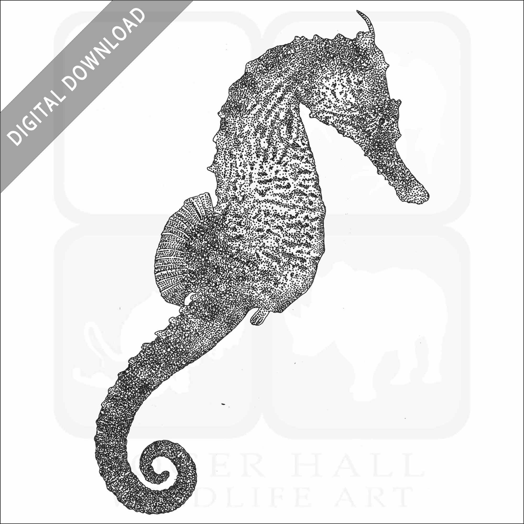 Stock art illustration of a Lined Seahorse (Hippocampus erectus.)Â The illustration is available in black and white or color for immediate download.