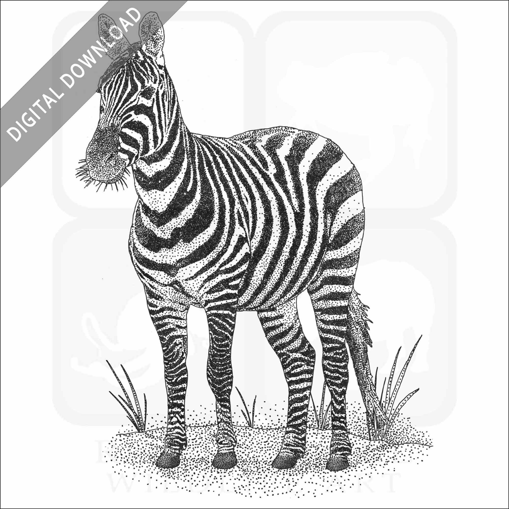 Stock art illustration of a Maneless Zebra (Equus quagga borensis.)Â The illustration is available in black and white or color for immediate download.