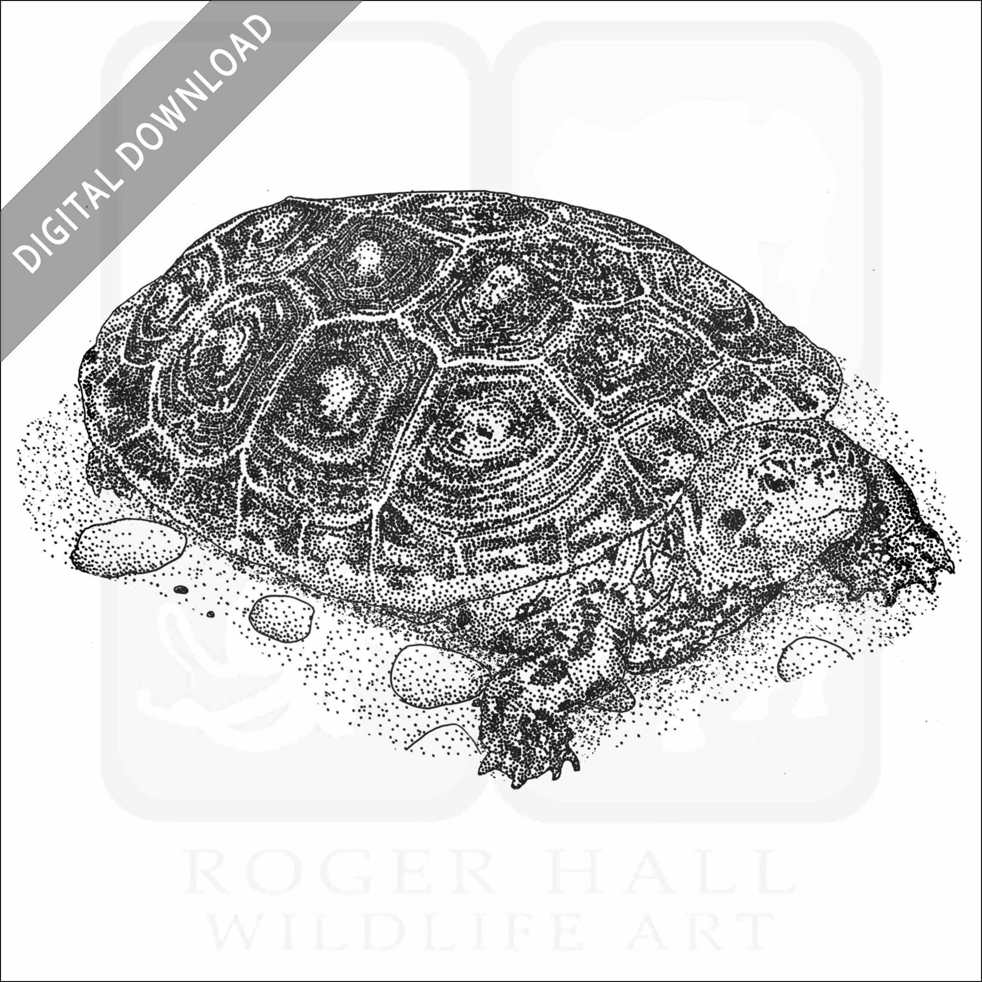 Stock art illustration of a Mangrove Terrapin (Malaclemys terrapin rhizophorarum.)Â The illustration is available in black and white or color for immediate download.