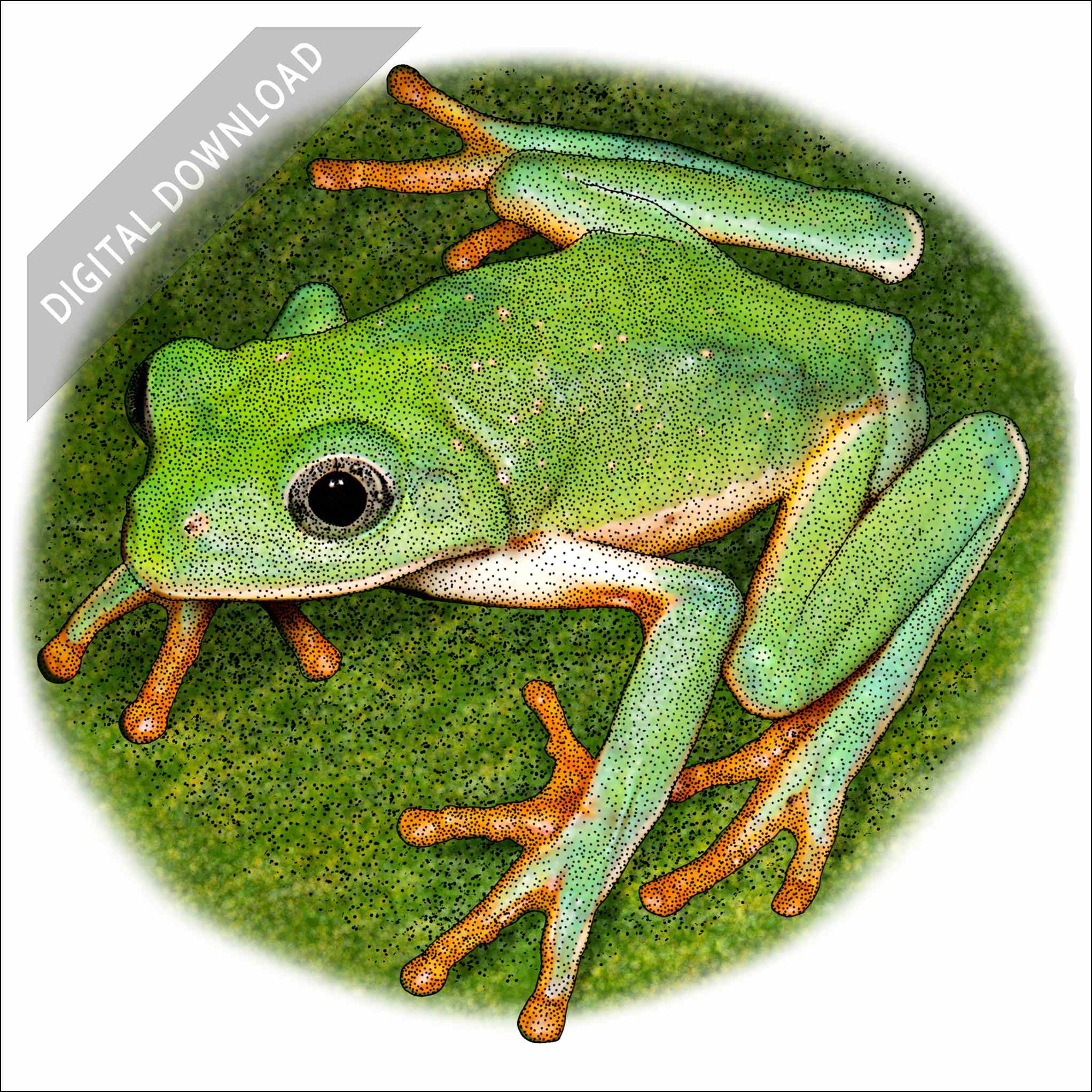 Stock art illustration of a Mexican Leaf Frog (Agalychnis dacnicolor.)Â The illustration is available in black and white or color for immediate download.