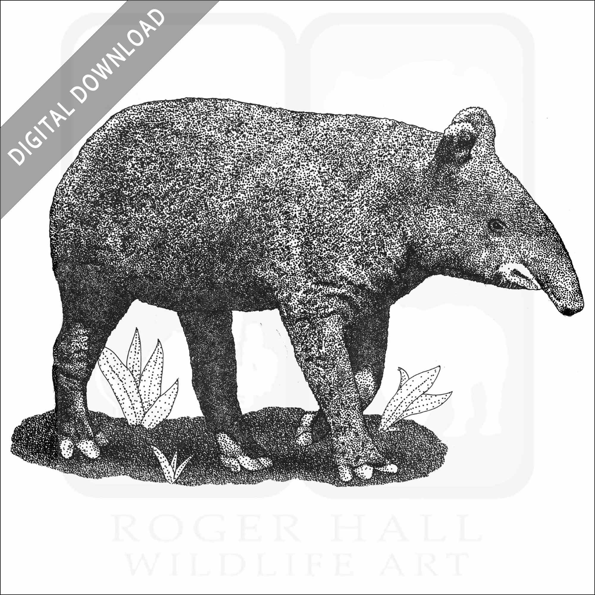 Stock art illustration of a Mountain Tapir (Tapirus pinchaque.)Â The illustration is available in black and white or color for immediate download.