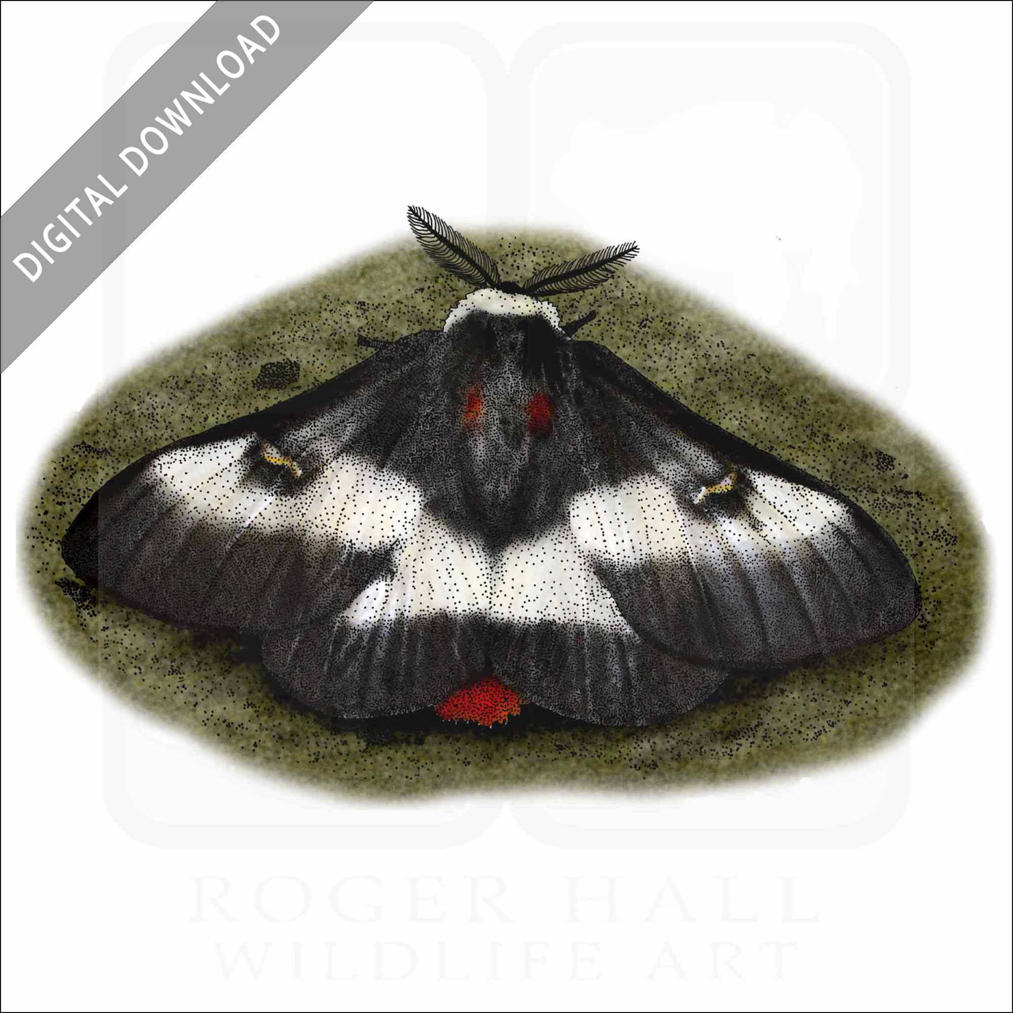 Stock art illustration of a Nevada Buck Moth (Hemileuca nevadensis.)Â The illustration is available in black and white or color for immediate download.