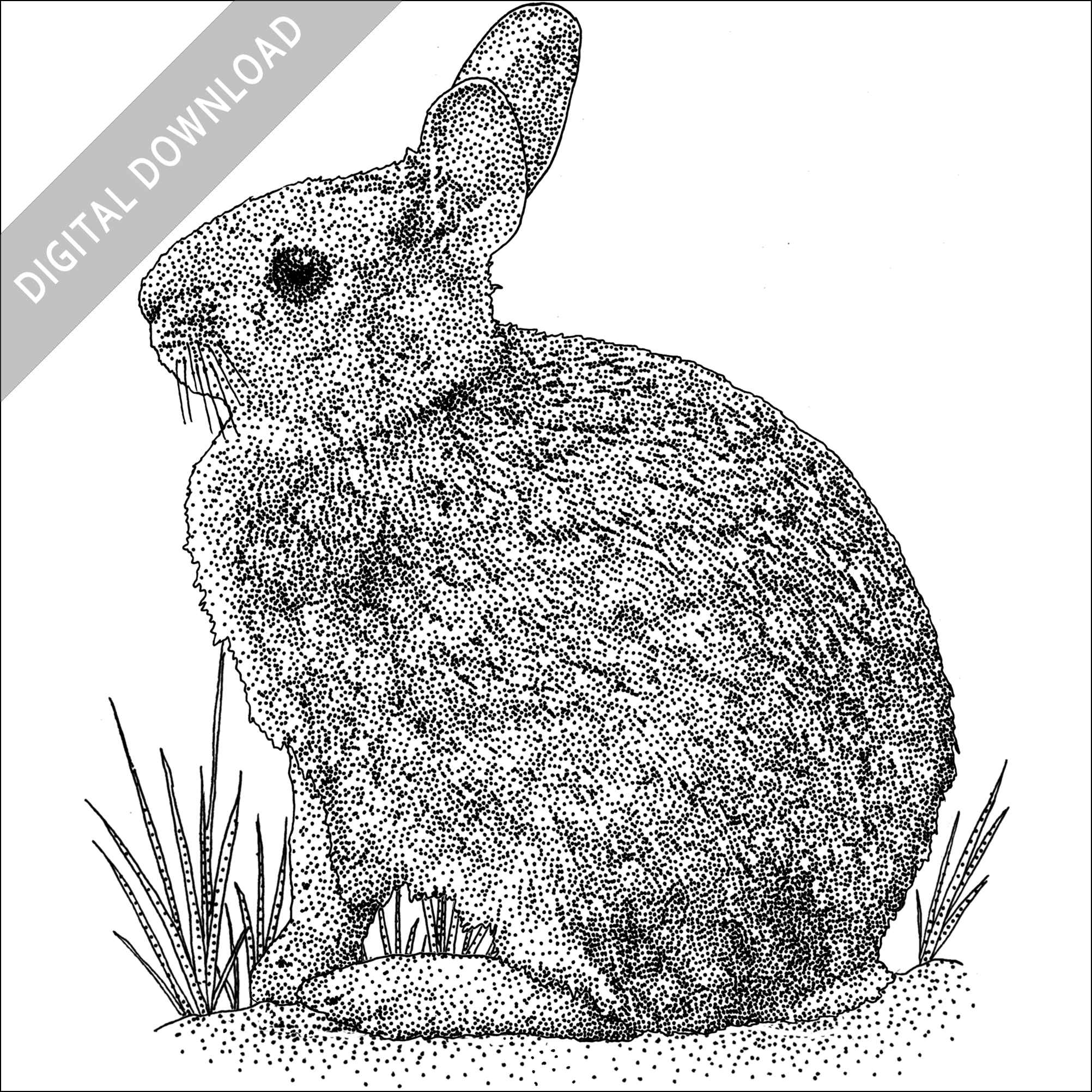 Stock art illustration of a New England Cottontail (Sylvilagus transitionalis.)Â The illustration is available in black and white or color for immediate download