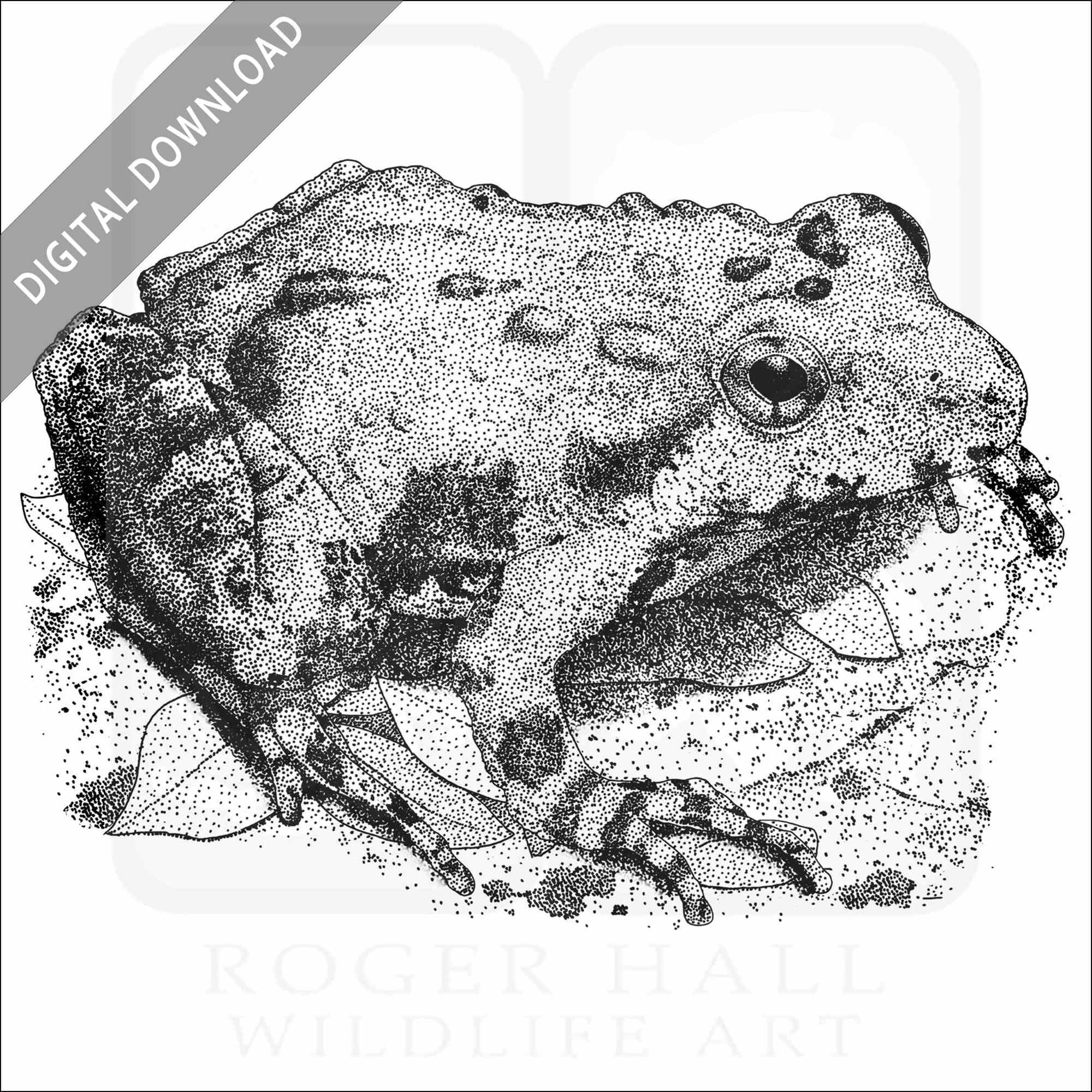 Stock art illustration of a Northern Cricket Frog (Acris crepitans.) The illustration is available in black and white or color for immediate download.
