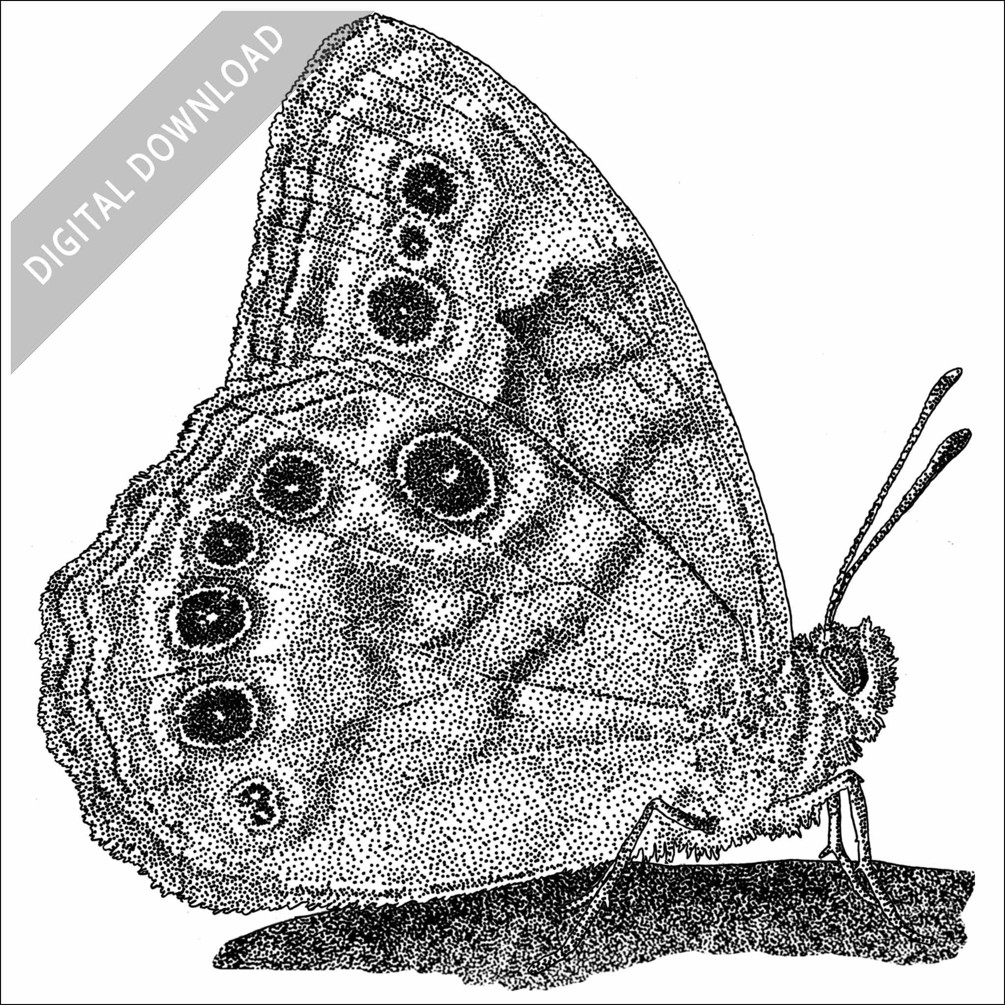 Stock art illustration of a Northern Pearly-Eye Butterfly (Enodia anthedon.)Â Â The illustration is available in black and white or color for immediate download.