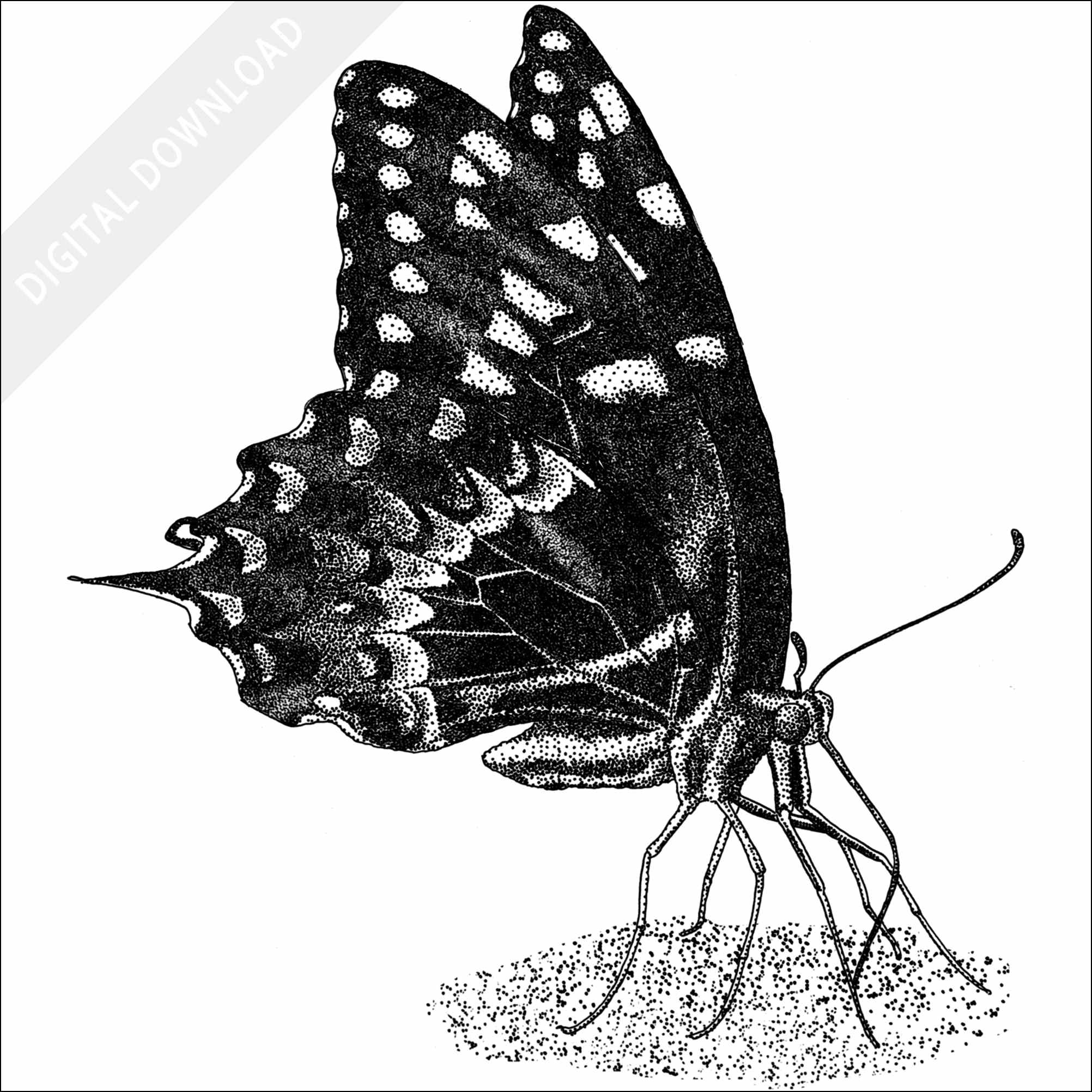 Stock art illustration of a Palamedes Swallowtail Butterfly (Papilio palamedes.)Â The illustration is available in black and white or color for immediate download.